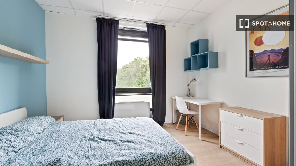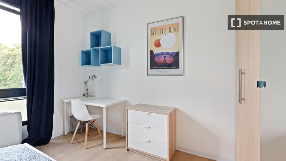 Scopri una confortevole stanza da chiamare casa in un appartamento condiviso con 5 camere da letto, dotato di arredi funzionali, una cucina ben attrezzata e un balcone per godersi l'aria fresca. Tutte le utenze necessarie sono incluse nell'affitto...