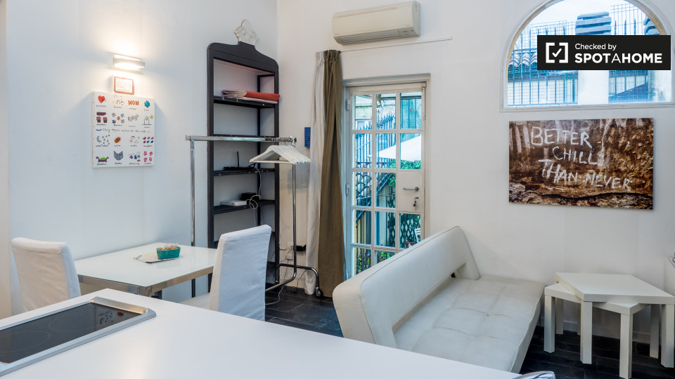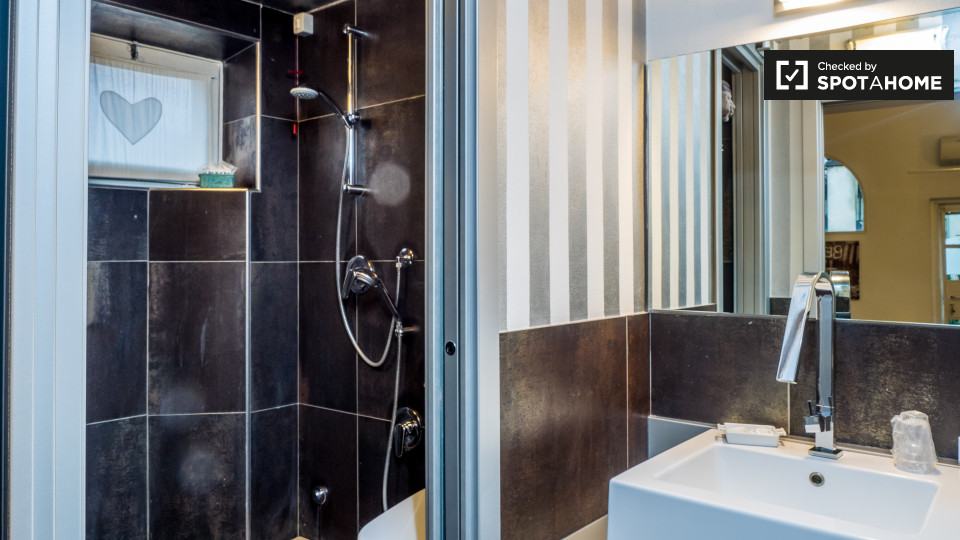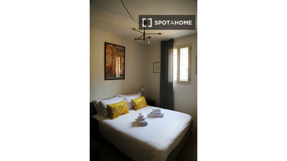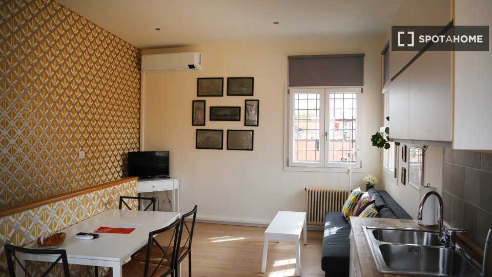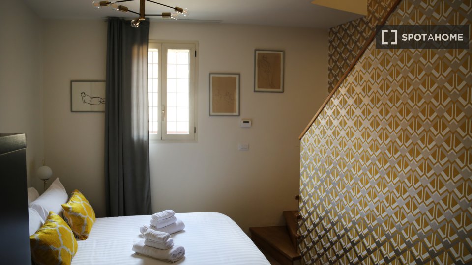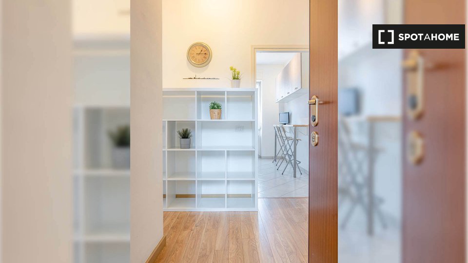 Questo splendido monolocale a Irnerio è completamente arredato, dotato di riscaldamento a gas metano e aria condizionata individuale. Include una cucina attrezzata con forno e lavatrice in comune. Le coppie sono benvenute e l'immobile è adatto a p...