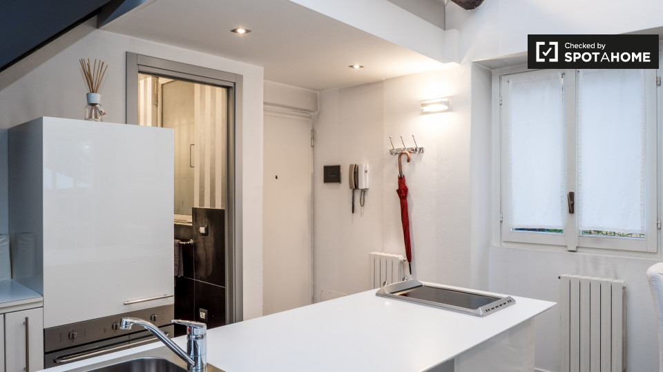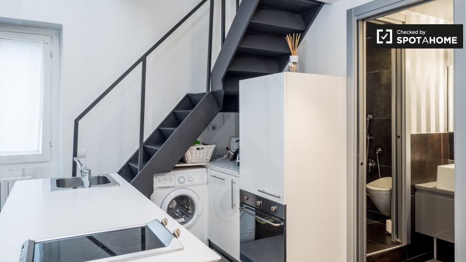 Situato nel vivace quartiere di Brera a Milano, questo monolocale arredato offre un'esperienza di vita moderna. È completamente attrezzato con lavatrice, lavastoviglie e forno privati, e dispone di aria condizionata e riscaldamento centralizzati, ...