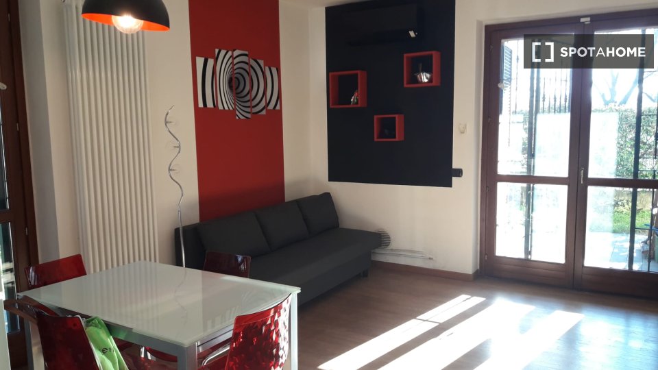Prenota la tua nuova casa in un appartamento condiviso con 2 camere da letto a Cusago, Milano. Questo appartamento completamente arredato è dotato di riscaldamento centralizzato, TV e cucina attrezzata con forno. L'immobile è ideale per profession...