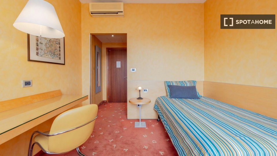 In un appartamento sito in via Tiepolo 9, Cinisello Balsamo, questa stanza singola è riservata a studenti universitari, tirocinanti o giovani lavoratori. Completamente arredata e corredata, è dotata di letto matrimoniale, comodino con lampada, arm...