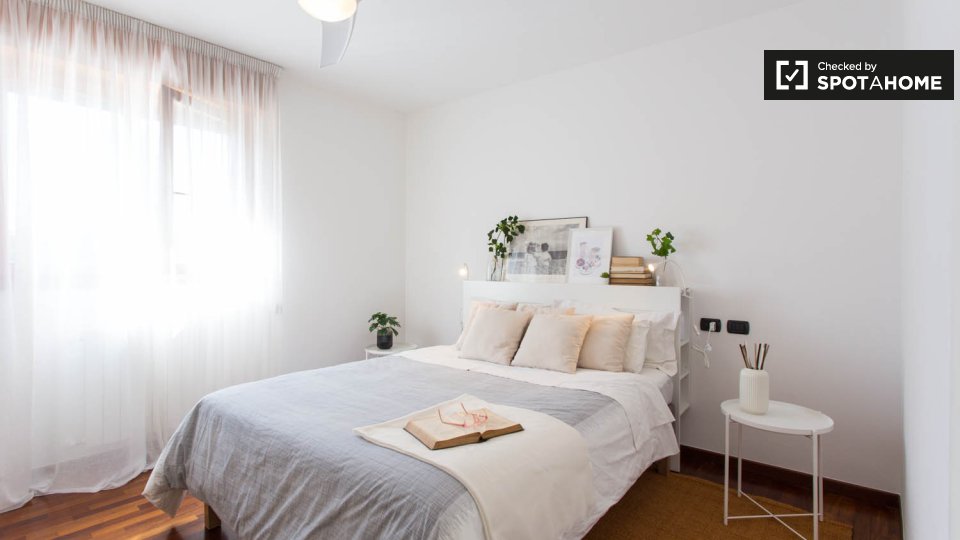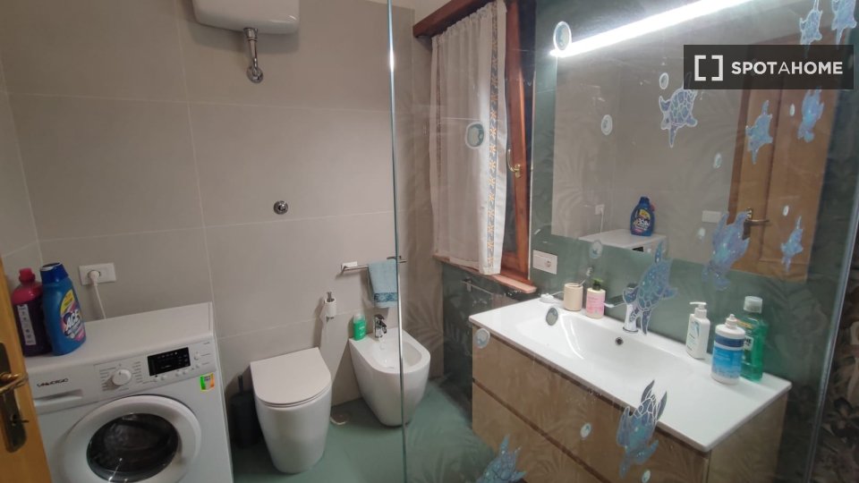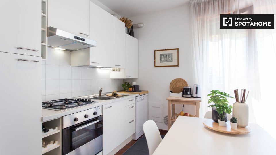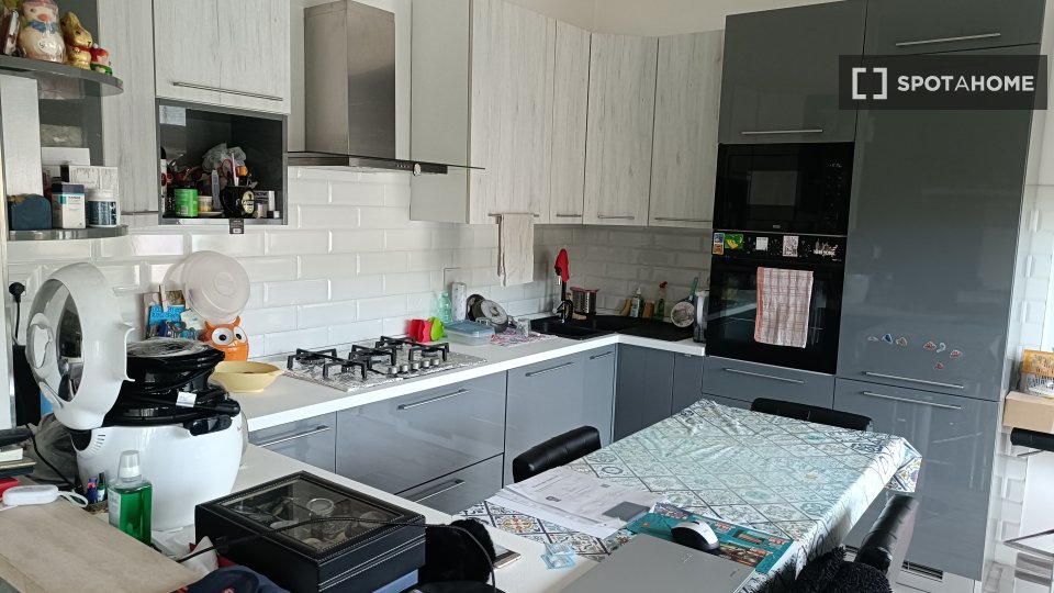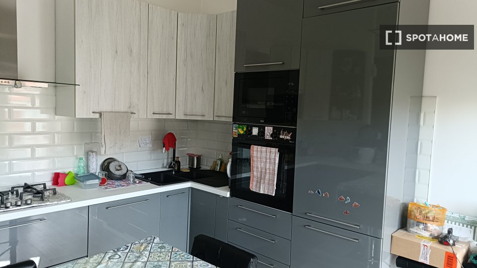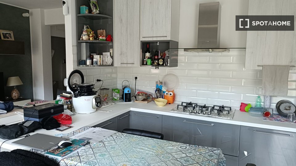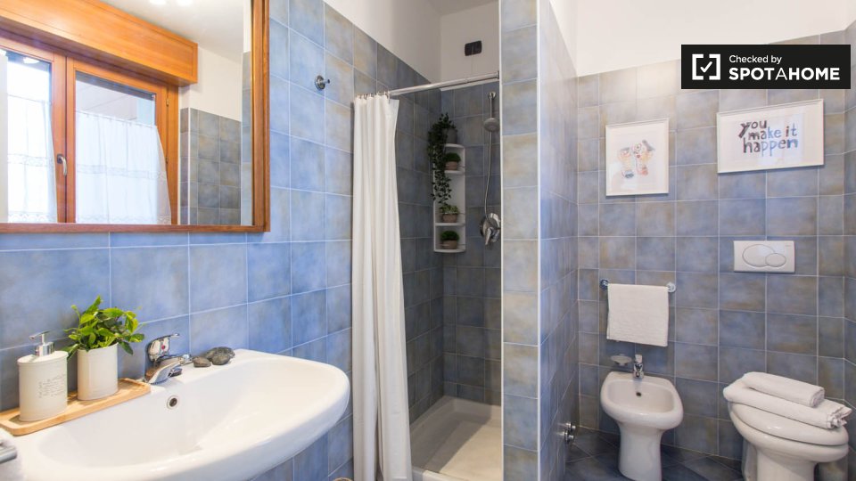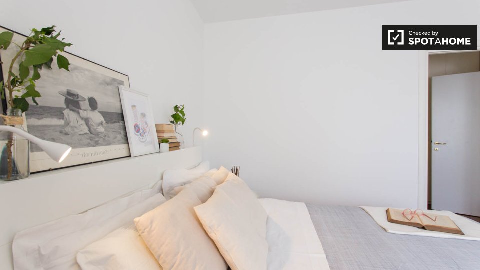 Questa camera completamente arredata in un appartamento condiviso con 5 camere da letto nel quartiere Aurelio Nord offre un balcone, riscaldamento centralizzato ed elettrodomestici moderni, come lavatrice e lavastoviglie. Tutte le utenze sono incl...