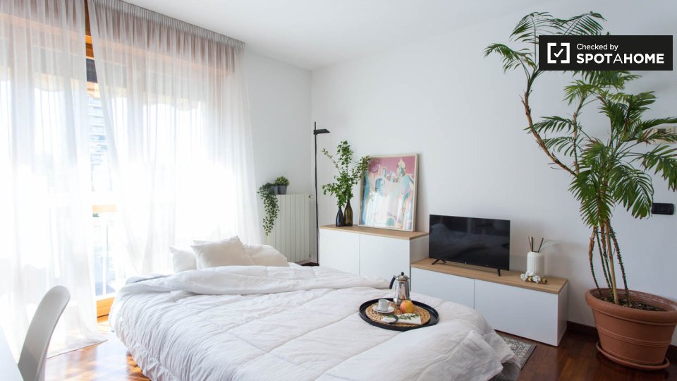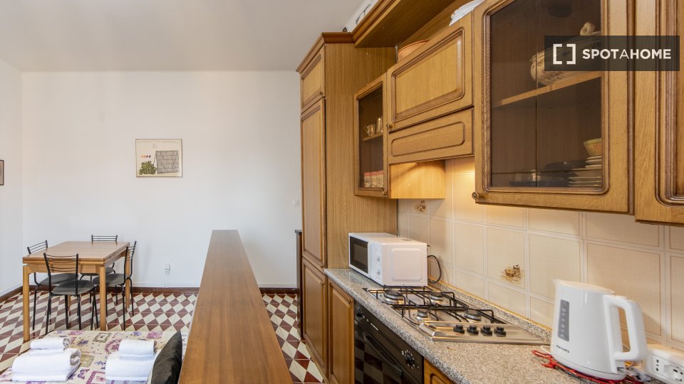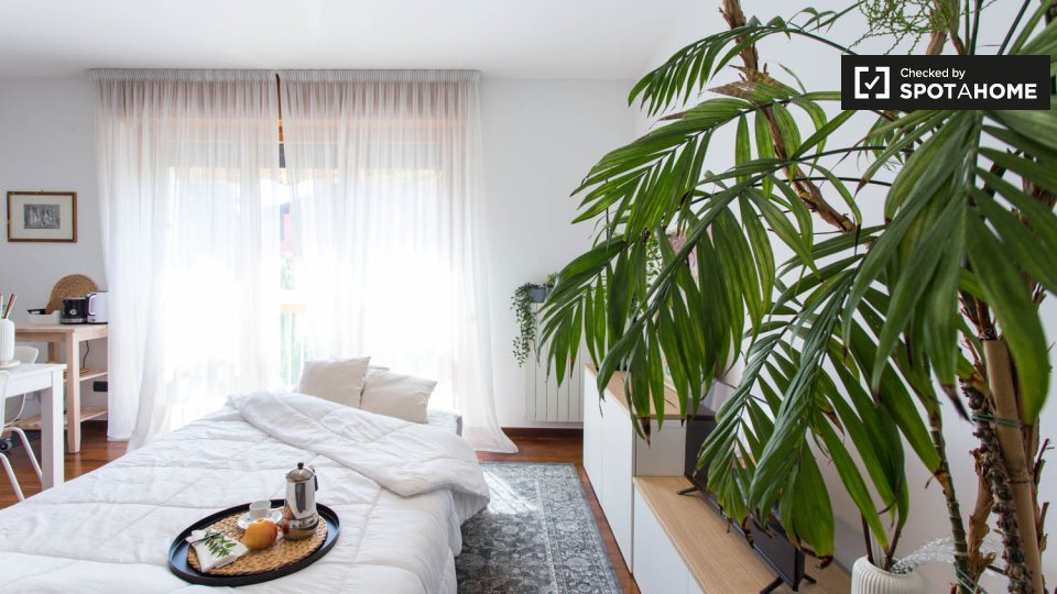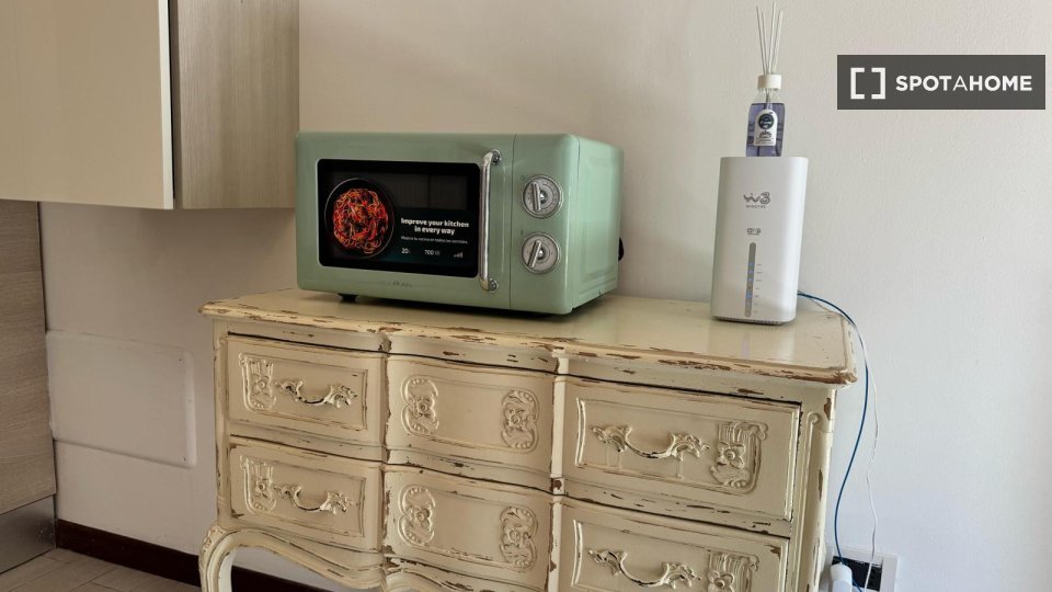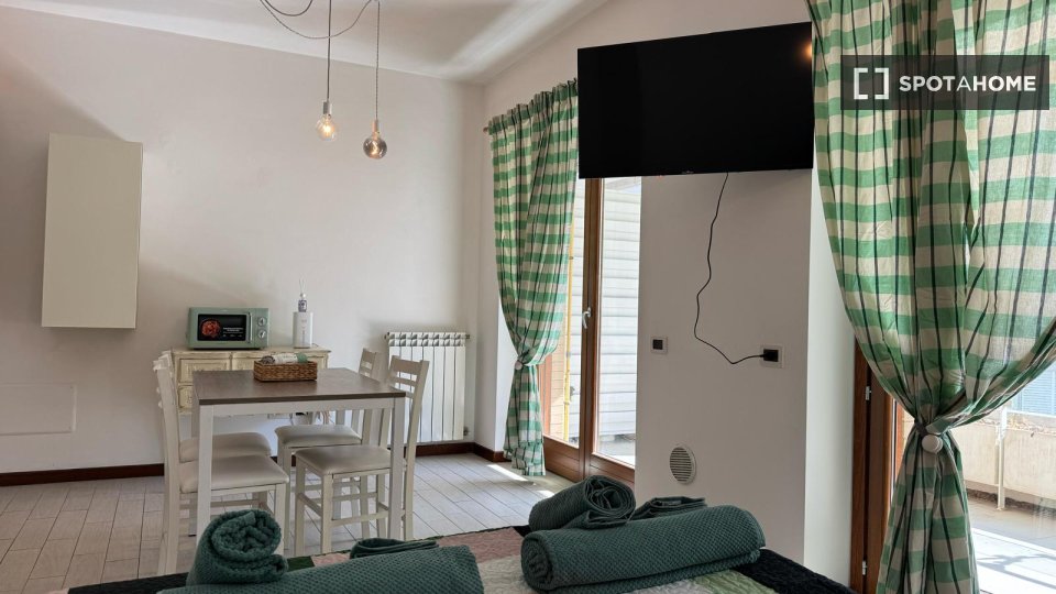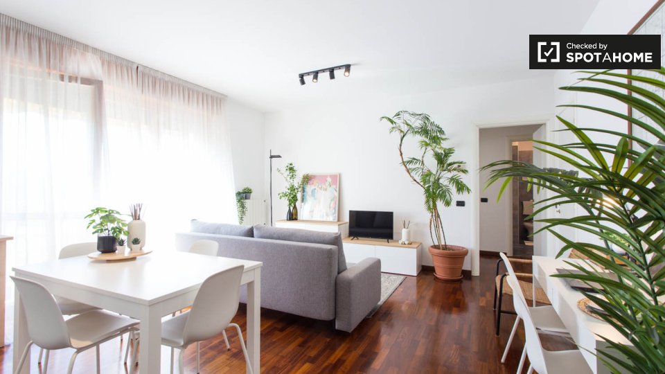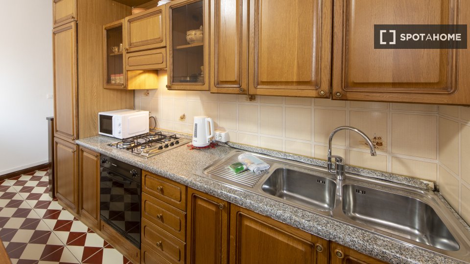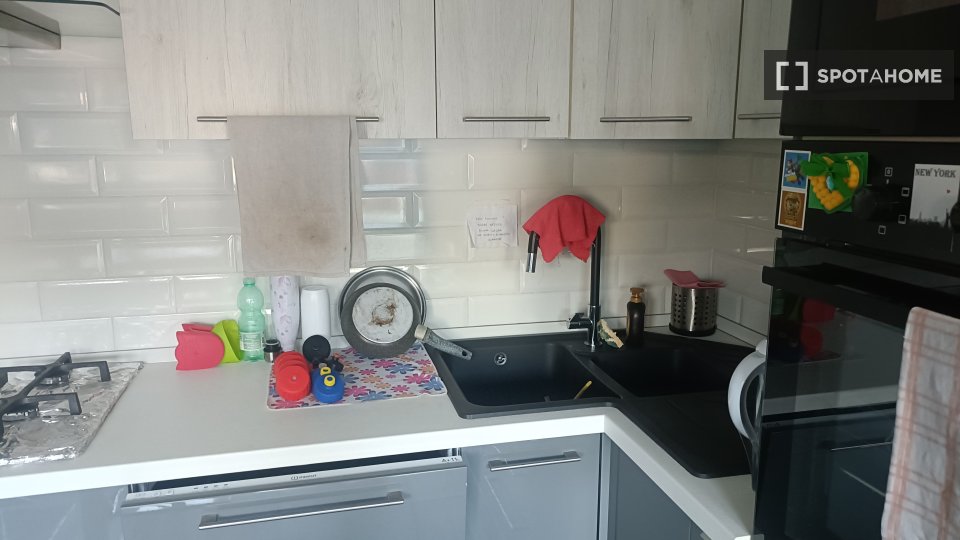 Questa camera completamente arredata in un appartamento condiviso con 5 camere da letto nel quartiere Aurelio Nord offre un balcone, riscaldamento centralizzato ed elettrodomestici moderni, come lavatrice e lavastoviglie. Tutte le utenze sono incl...