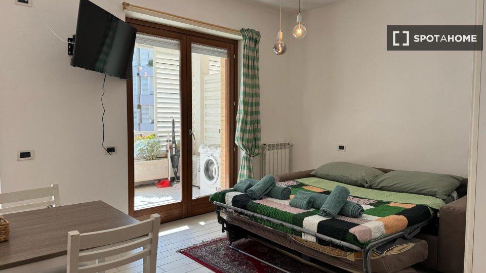 Questo monolocale arredato a Castel di Leva è disponibile in affitto e offre una cucina attrezzata, un balcone e aria condizionata e riscaldamento centralizzati. Animali domestici e fumo sono ammessi, garantendo una soluzione abitativa flessibile....