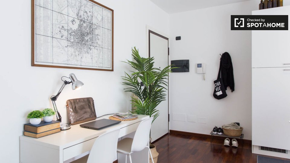 Questa camera arredata in un appartamento condiviso con due camere da letto è disponibile in affitto a Porta Romana, Milano. La camera è perfetta per single professionisti o studenti. L'appartamento è dotato di aria condizionata centralizzata e cu...