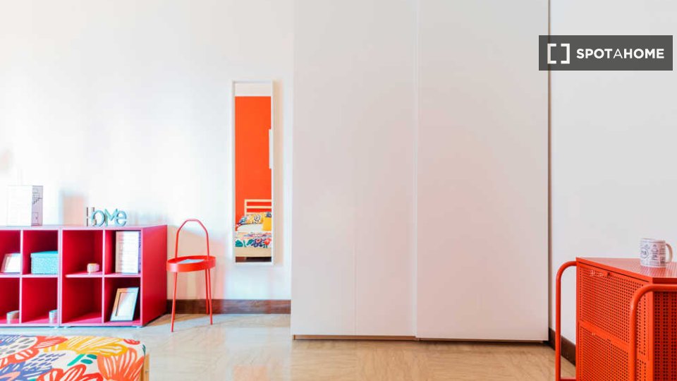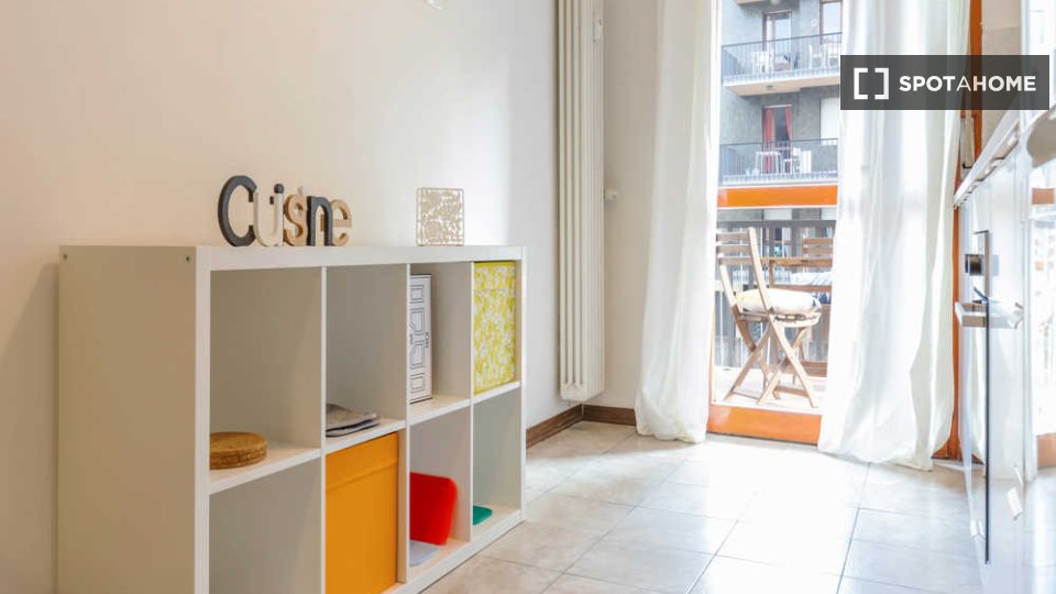 Posto letto in camera condivisa in un appartamento con una camera da letto situato nel quartiere Brera di Milano. L'appartamento è completamente arredato e dotato di aria condizionata individuale, forno e lavatrice, creando uno spazio abitativo co...