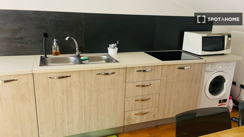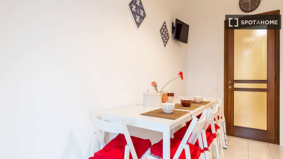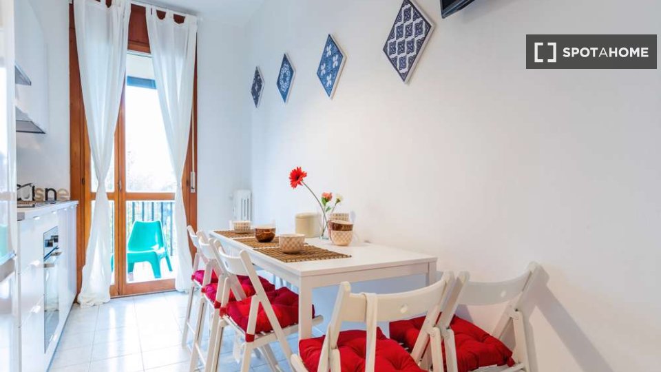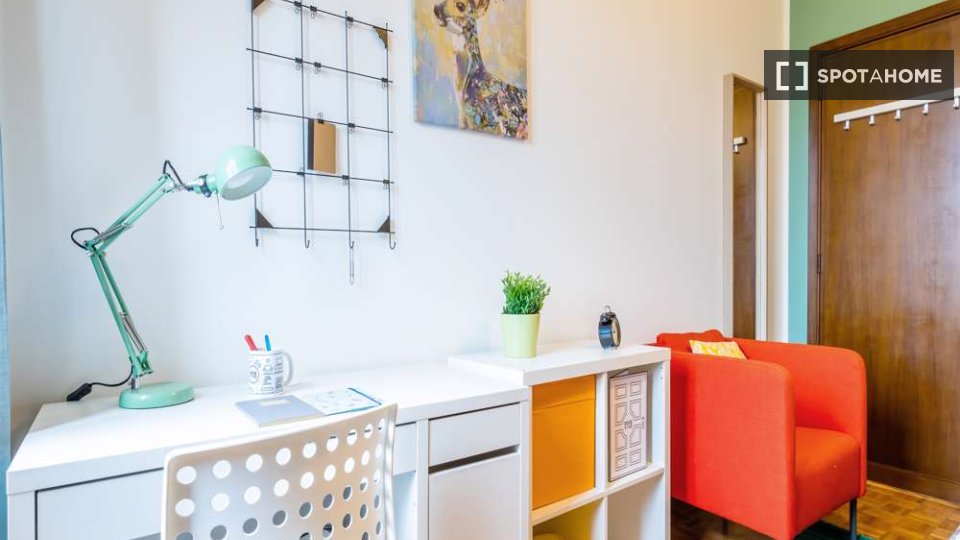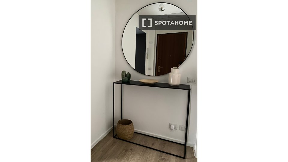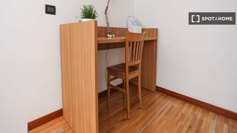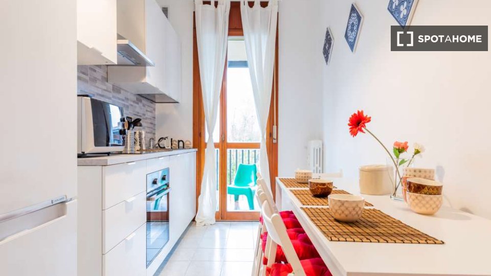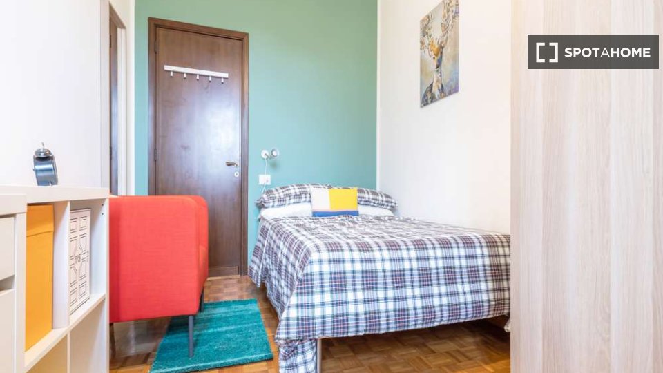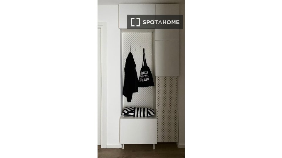 Scopri questa confortevole camera completamente arredata, situata in un appartamento condiviso con 2 camere da letto a Farini, Milano. L'appartamento offre comfort moderni, tra cui aria condizionata centralizzata, lavatrice privata e cucina comple...