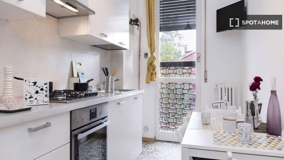 Questo appartamento completamente arredato con 2 camere da letto si trova nel quartiere Gambara di Milano, ben collegato. Dotato di aria condizionata individuale, lavatrice privata e balcone, questo appartamento è perfetto per una vita urbana conf...