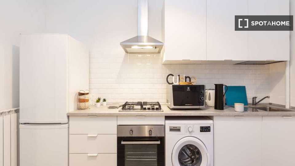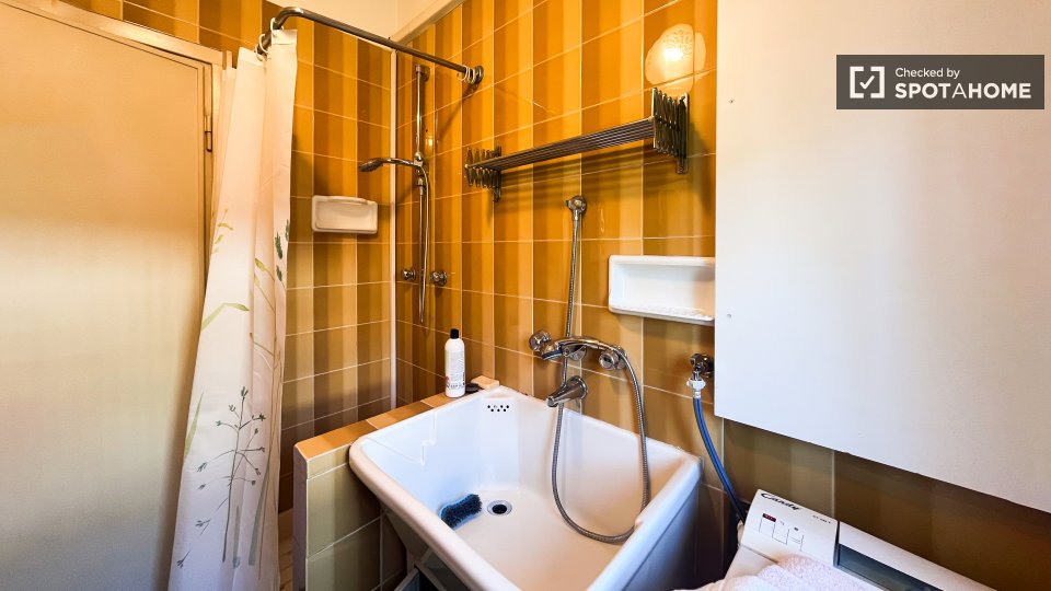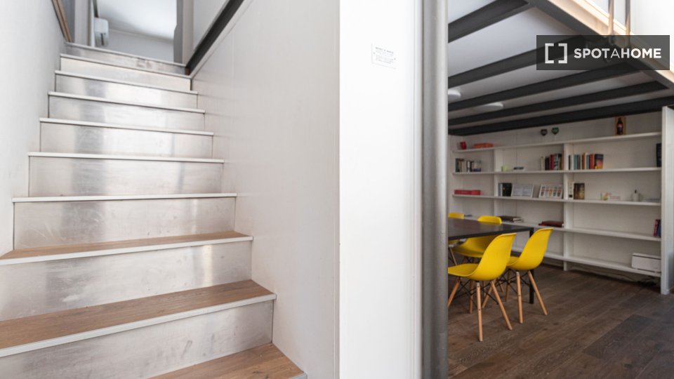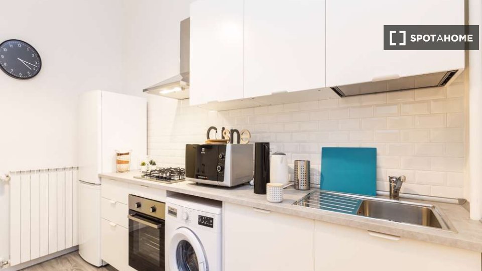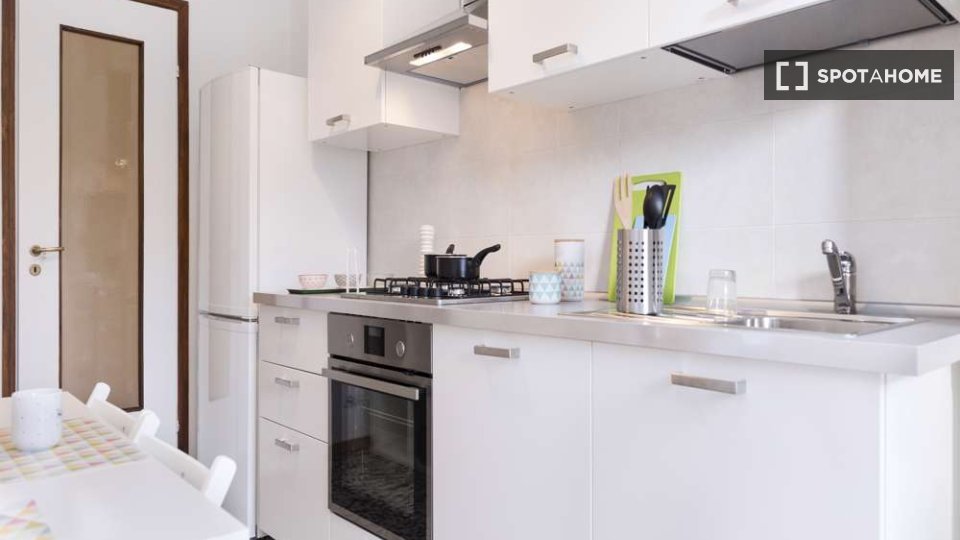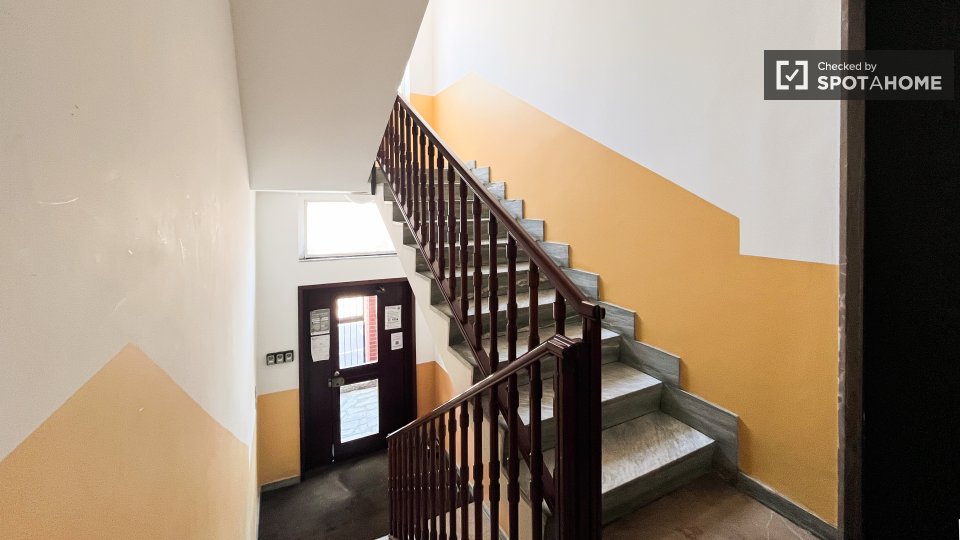 Questo grazioso appartamento condiviso offre una camera completamente arredata e dotata di comfort essenziali, tra cui una lavatrice privata e il riscaldamento centralizzato. La cucina è completamente attrezzata per garantirvi un'esperienza di vit...
