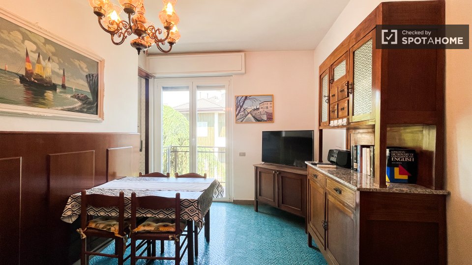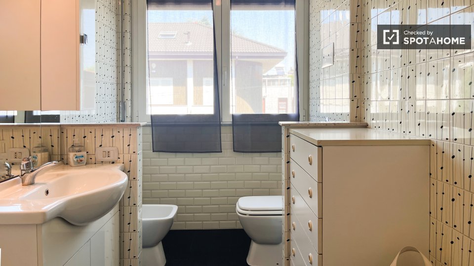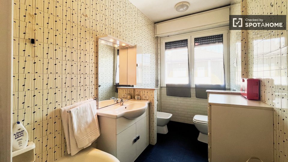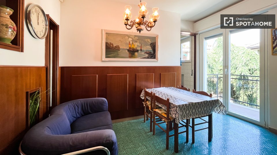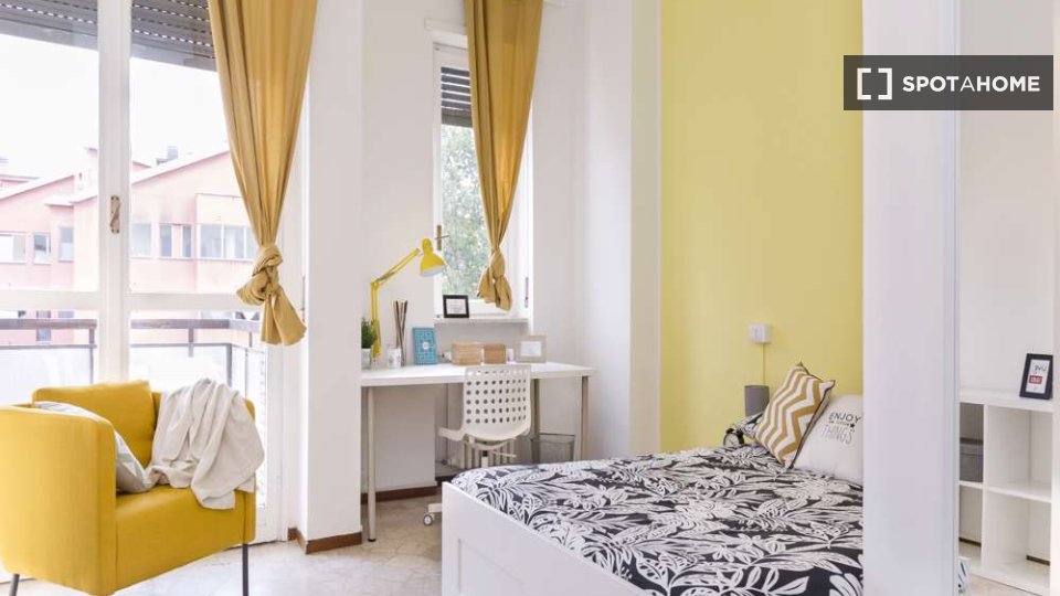 Scopri questa stanza completamente arredata in un appartamento condiviso con 4 camere da letto a Cesano Boscone. L'appartamento è dotato di una cucina completamente attrezzata con lavastoviglie e forno, lavatrice privata e riscaldamento centralizz...