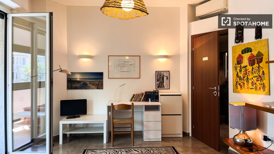 Questo appartamento con una camera da letto in Aurelio Sud, Roma, vanta ampi comfort con aria condizionata individuale. L'appartamento è completamente arredato e dispone di una cucina attrezzata con lavastoviglie e forno, con lavatrice in comune a...