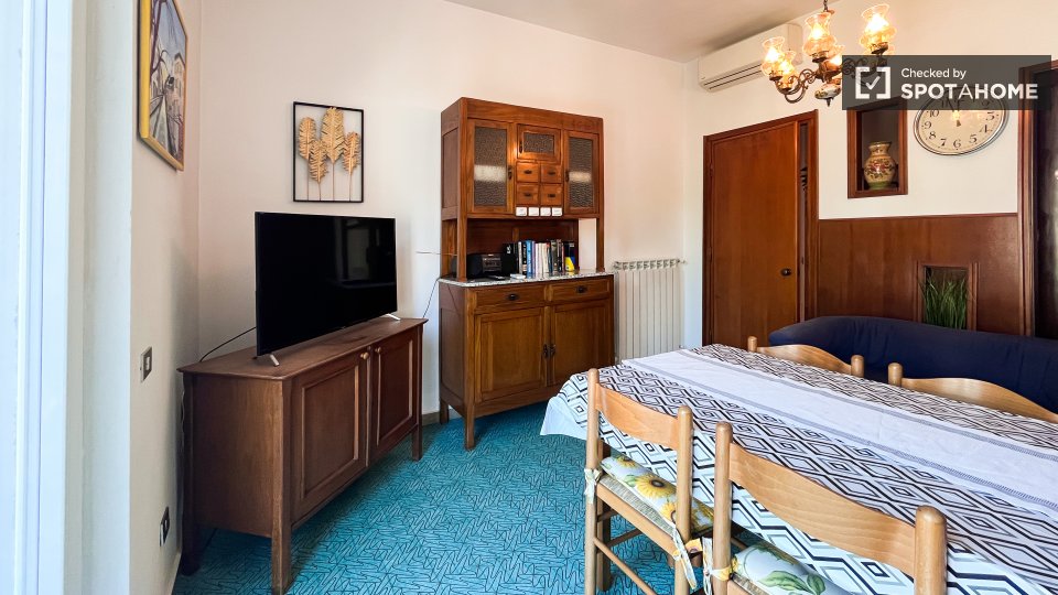 Questo appartamento ben arredato con 2 camere da letto è disponibile per l'affitto nell'incantevole quartiere di Monteverde Nuovo, a Roma. L'immobile è completamente arredato, rendendo il trasloco semplice e piacevole. Dispone di aria condizionata...