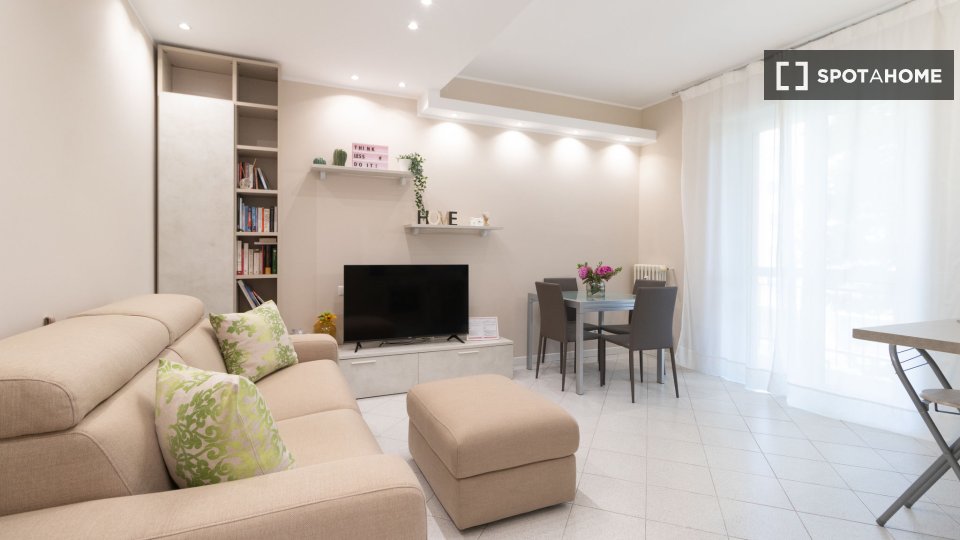 Situato in Forze Armate, questo grazioso appartamento con una camera da letto è completamente arredato e dotato di aria condizionata centralizzata, lavatrice in comune, lavastoviglie, forno e TV. È adatto a professionisti, studenti e coppie, con p...