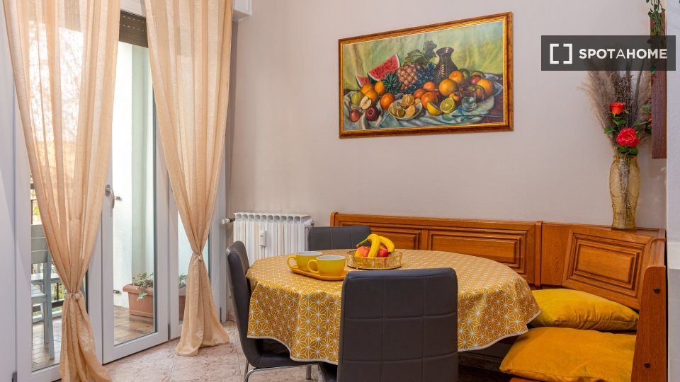 Questa spaziosa camera in un appartamento condiviso con 4 camere da letto è ora disponibile per l'affitto nel quartiere Eroi Trionfale. L'appartamento è completamente arredato e dispone di riscaldamento centralizzato, cucina attrezzata con elettro...