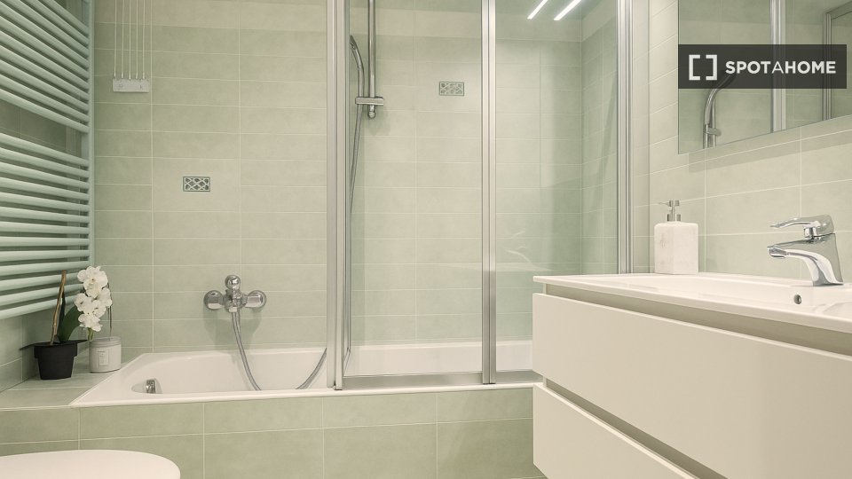 Posto letto in camera doppia condivisa con bagno privato. L'appartamento è ubicato all'interno di un appartamento di 3 camere (due singole e una doppia in totale) con soggiorno, cucina completamente attrezzata e TV. La superficie della camera è di...