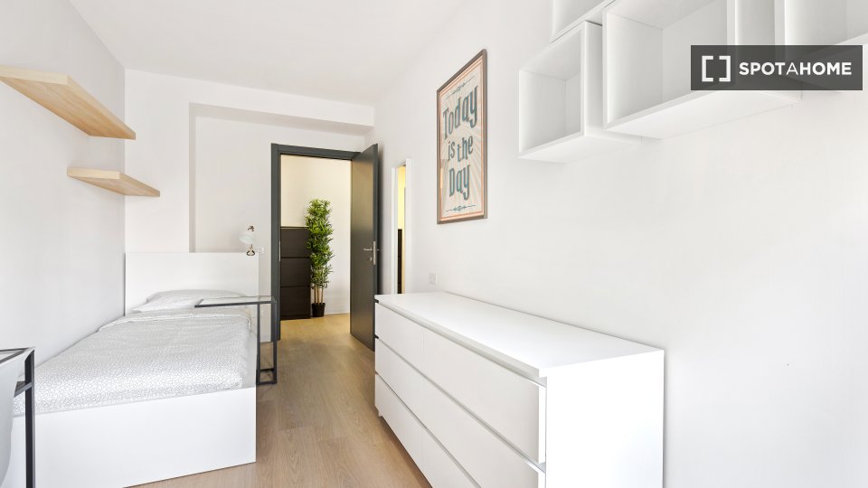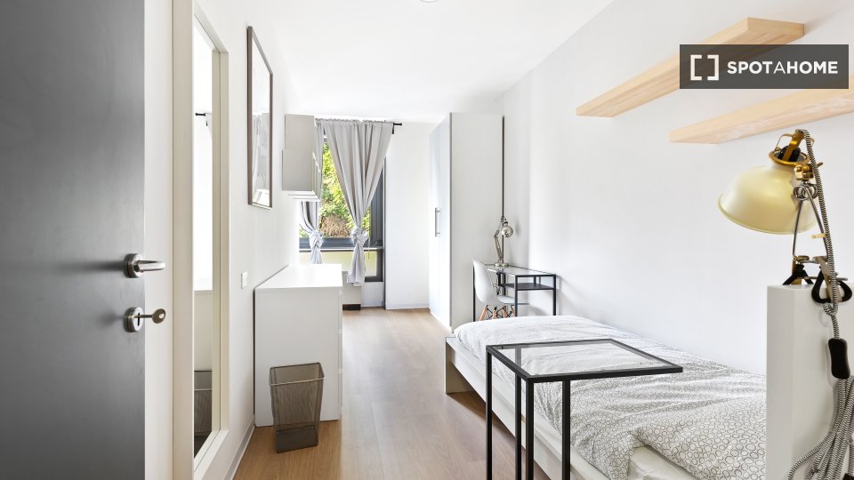 Camera con bagno in comune. Si trova all'interno di un appartamento con 3 camere (due singole e una doppia in totale) con soggiorno, cucina completamente attrezzata e TV. La superficie della camera è di circa 13 m². La camera è composta da un lett...