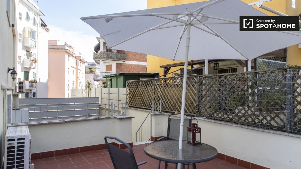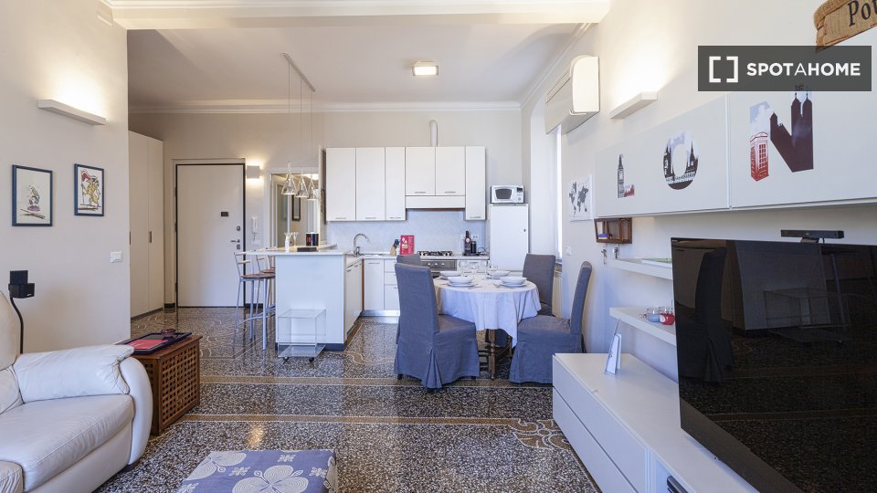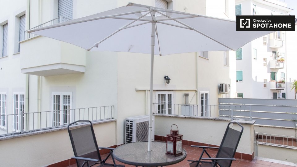 Scopri la comodità della vita urbana in questo appartamento arredato a Trieste, Roma. L'immobile dispone di comfort moderni, tra cui un sistema di aria condizionata centralizzato, una cucina completamente attrezzata con lavastoviglie e forno e una...