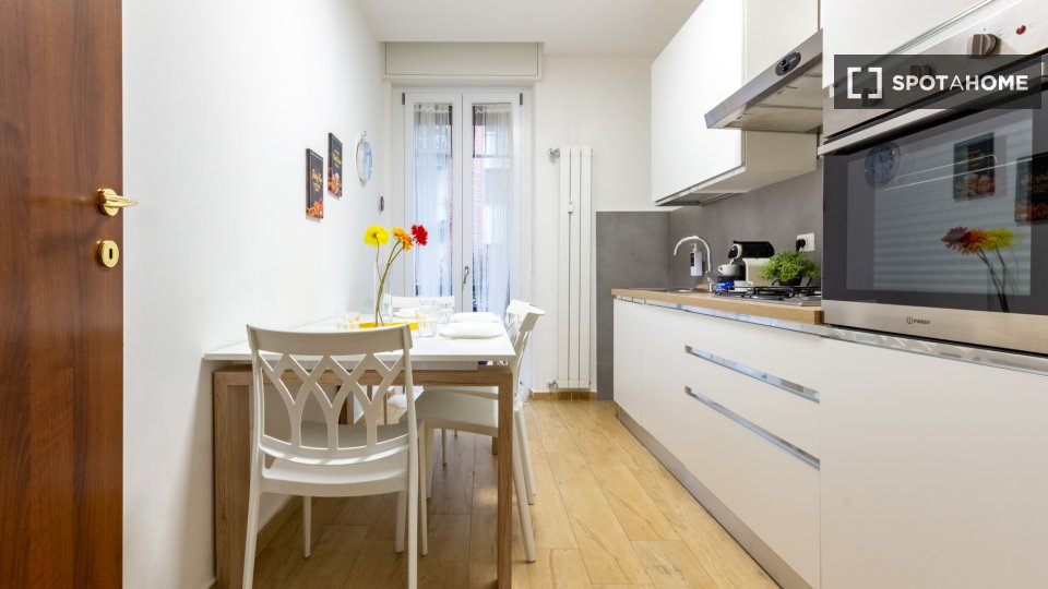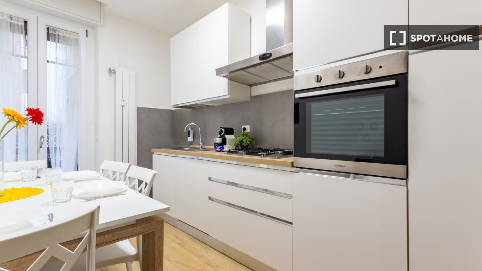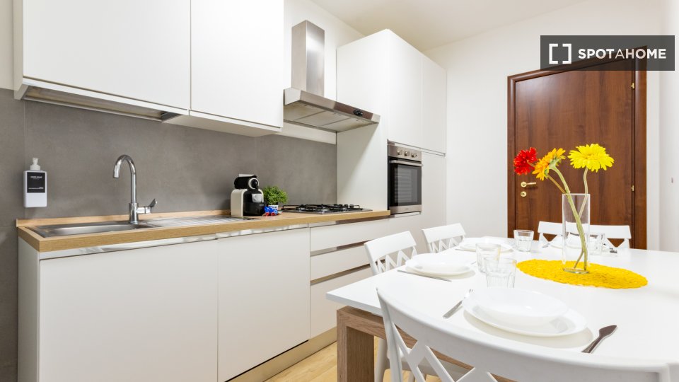 Scopri uno spazioso appartamento con 4 camere da letto nel vivace quartiere di Bande Nere, a Milano. Questa proprietà è completamente arredata e dotata di cucina attrezzata, lavatrice e asciugatrice private, lavastoviglie, forno e aria condizionat...