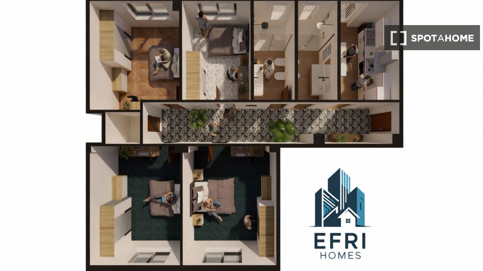 Camere e posti letto in appartamento ristrutturato con 5 camere da letto a Borgo Filadelfia La casa è configurata come da rendering; le camere sono private, con due bagni e una cucina in comune. Sia in cucina che nei bagni è disponibile tutto il ...