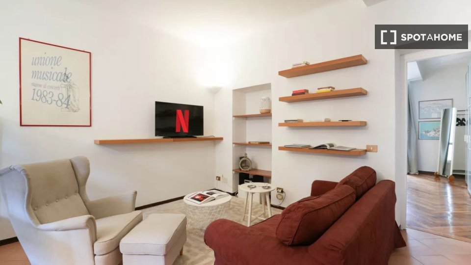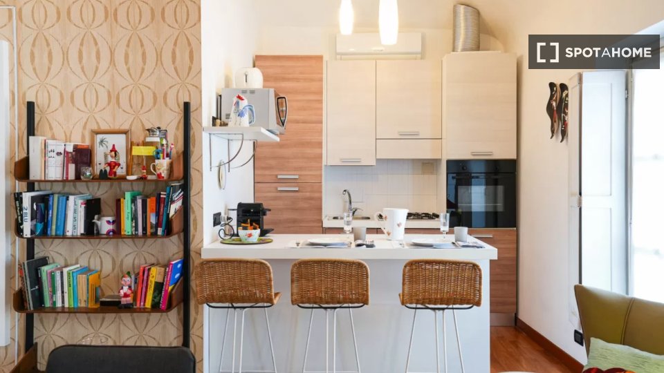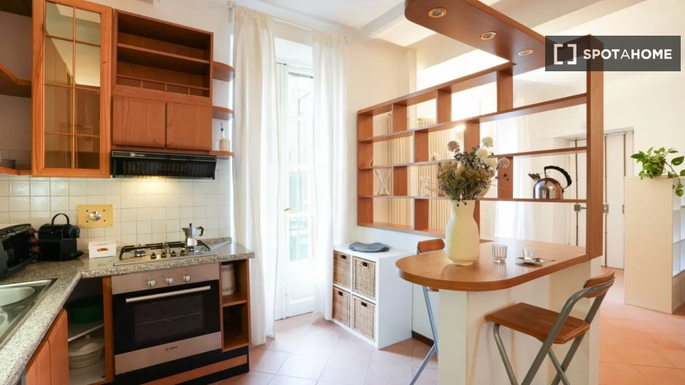 Questo appartamento arredato con una camera da letto è disponibile per l'affitto nel Rione Trevi, Roma. L'immobile offre aria condizionata individuale per il massimo comfort. Gli animali domestici sono ammessi e gli inquilini possono fumare all'in...