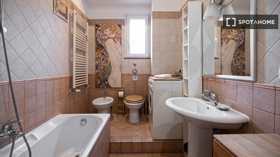 Benvenuti in una stanza condivisa completamente arredata in un appartamento con 3 camere da letto a San Paolo, Roma. Questa proprietà è dotata di comfort essenziali come una lavatrice in comune, interni arredati e un sistema di riscaldamento centr...