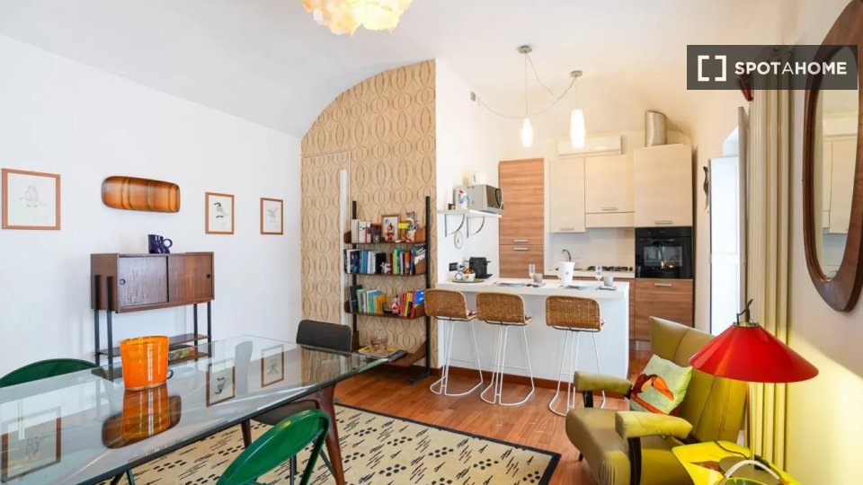 Scoprite un elegante stile di vita urbano in questo appartamento arredato con una camera da letto situato nel quartiere Centrale di Milano. L'immobile è dotato di un moderno sistema di aria condizionata, un forno completamente funzionante e una TV...