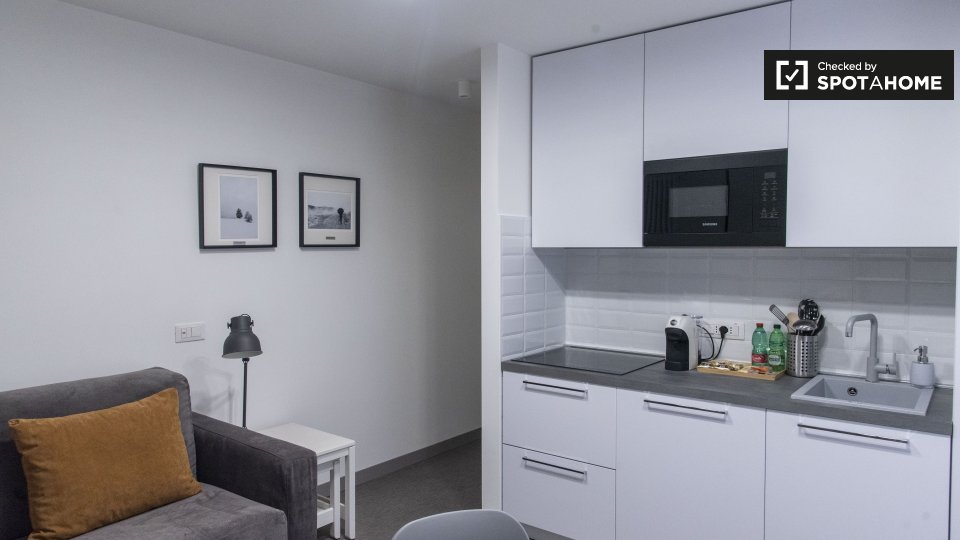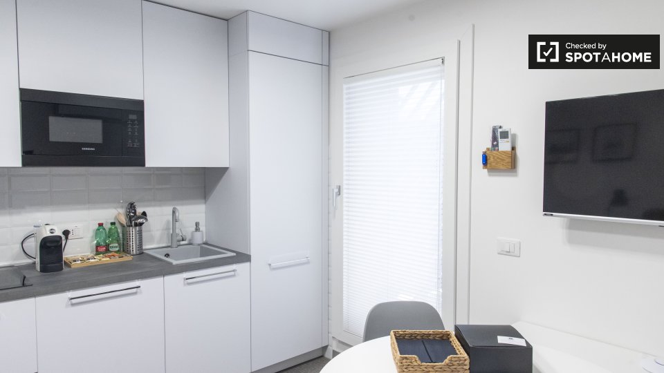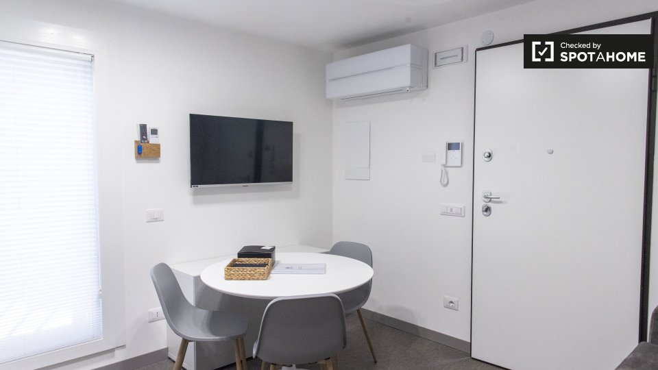 Scopri questo monolocale completamente arredato situato a Balduina, Roma. Questo monolocale è dotato di aria condizionata individuale, riscaldamento centralizzato e forno elettrico. La cucina attrezzata e la lavanderia in comune lo rendono una sce...