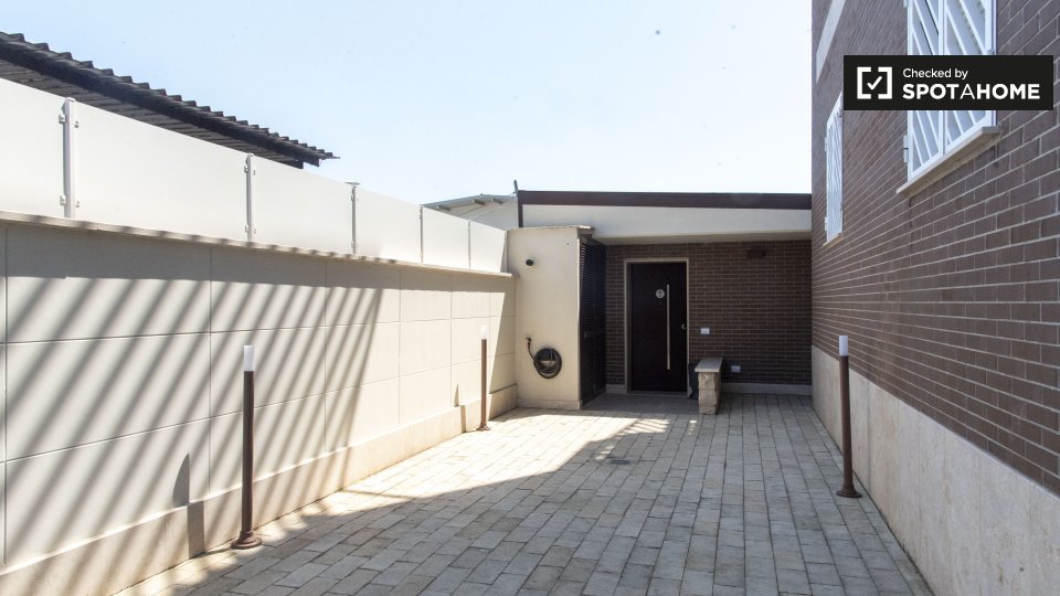 L'immobile si trova al piano terra di un elegante palazzo in Via Prenestina vicino all'uscita del Grande Raccordo Anulare (GRA) di Roma (uscita 16). L'appartamento è composto da un'ampia stanza con un comodo divano singolo e smart TV, una zona...