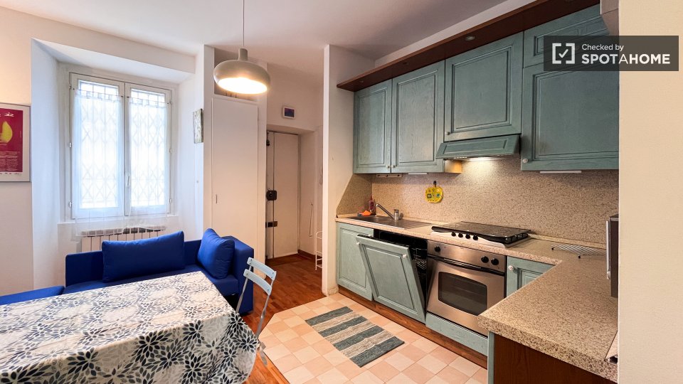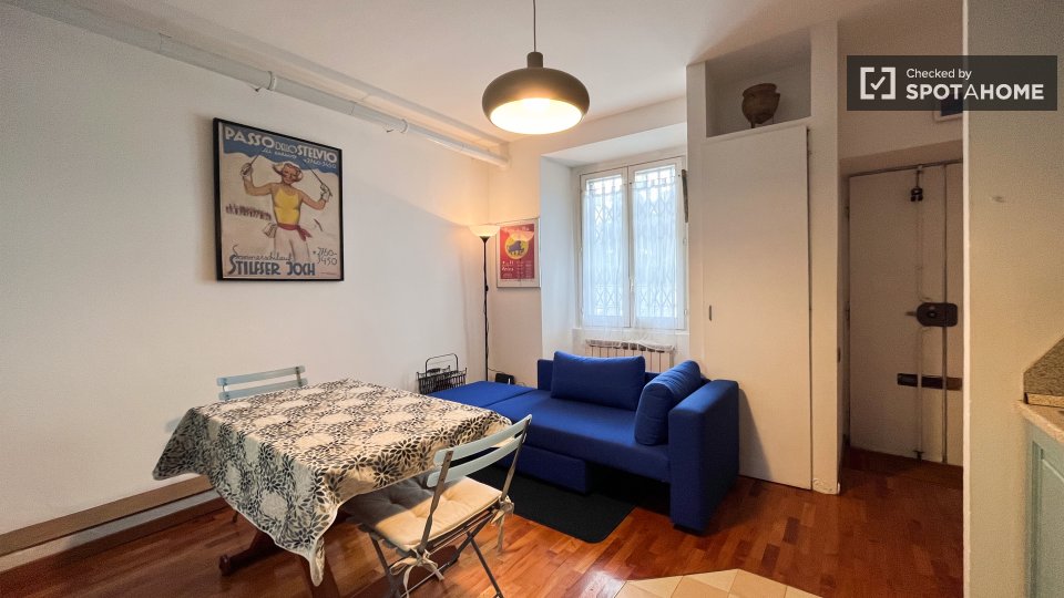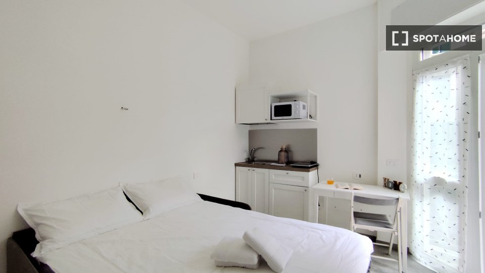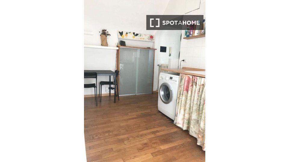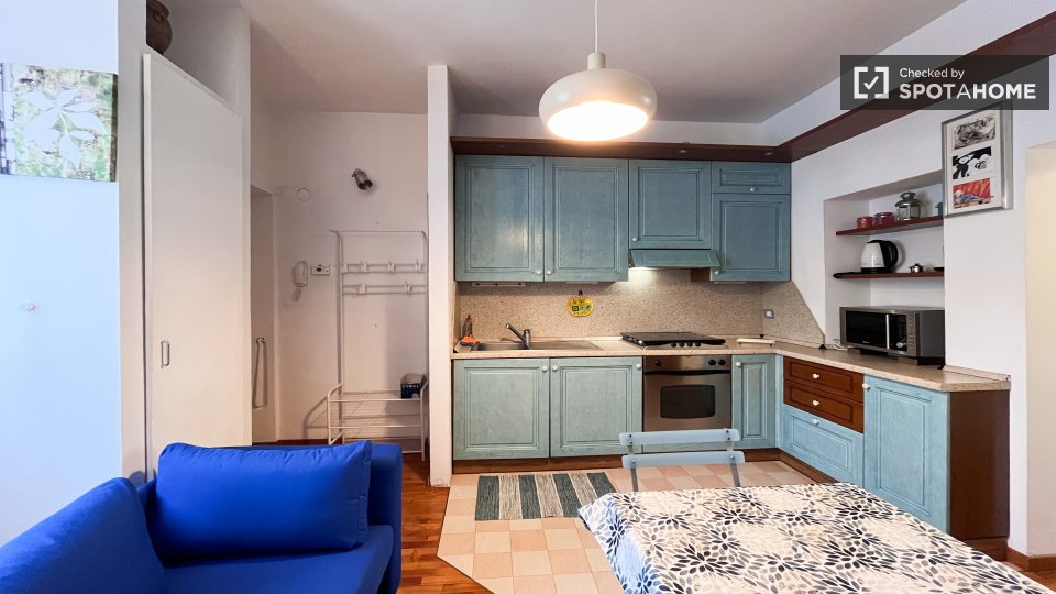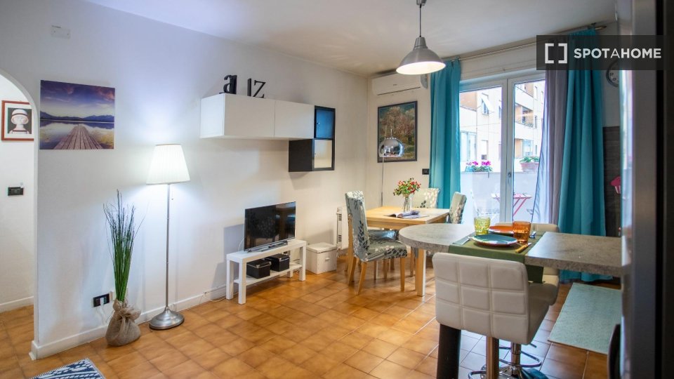 Questo monolocale completamente arredato a Tibaldi, Milano, offre un soggiorno confortevole, dotato di aria condizionata individuale e riscaldamento a gas naturale. La cucina è completamente attrezzata, con lavastoviglie e forno. È consentito fuma...
