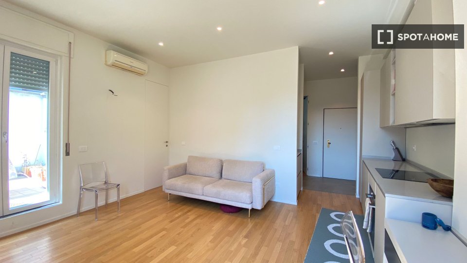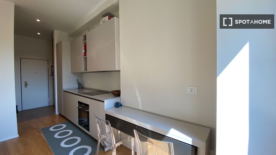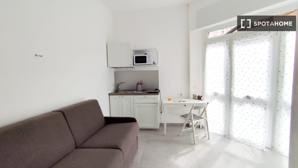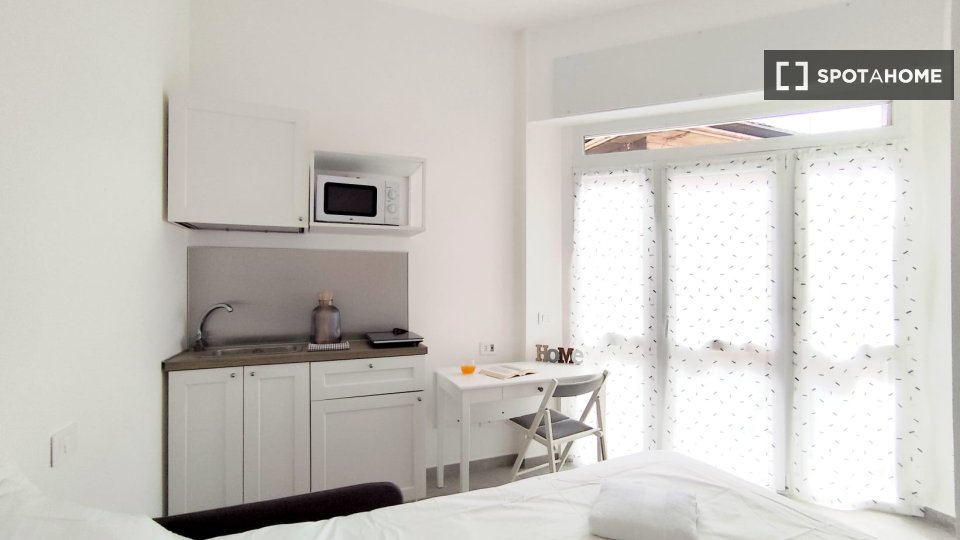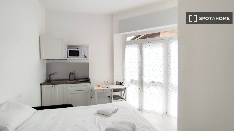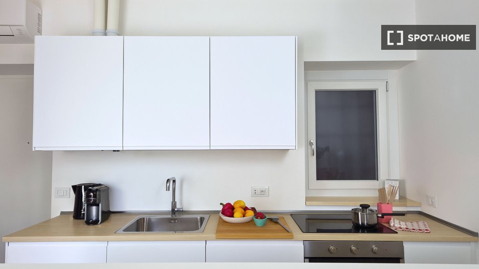 Questo monolocale completamente arredato a Tibaldi, Milano, offre un soggiorno confortevole, dotato di aria condizionata individuale e riscaldamento a gas naturale. La cucina è completamente attrezzata, con lavastoviglie e forno. È consentito fuma...