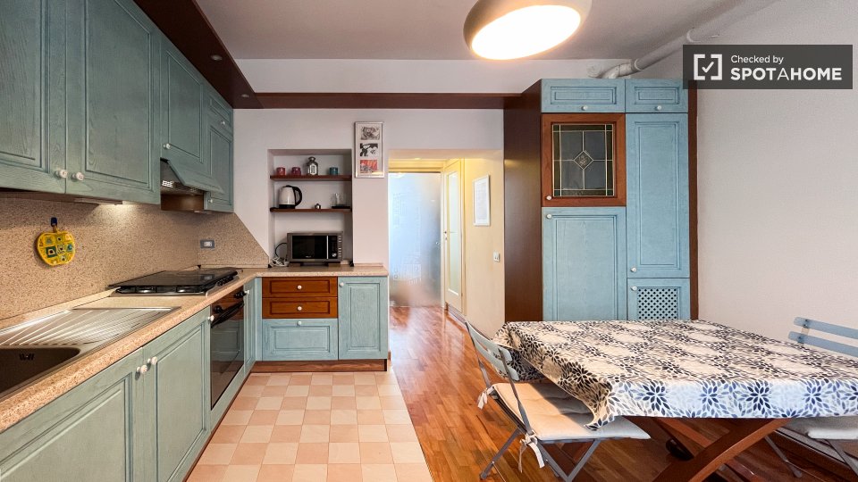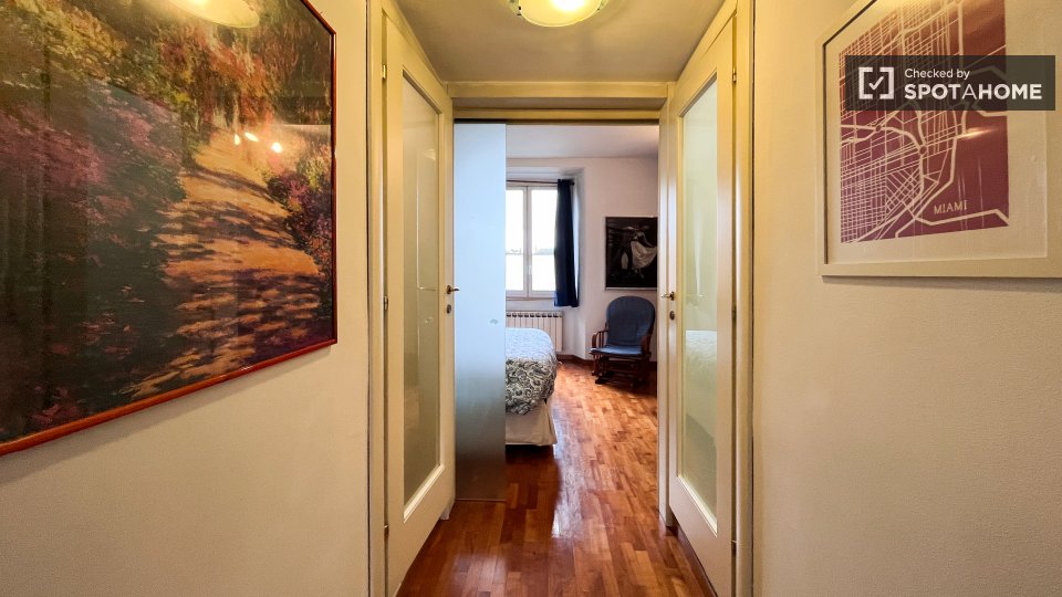 Scopri questo grazioso appartamento con 2 camere da letto situato nel Quartiere della Vittoria, a Roma. L'immobile è completamente arredato e dispone di cucina completamente attrezzata, lavatrice privata, TV e aria condizionata in ogni unità. Si p...