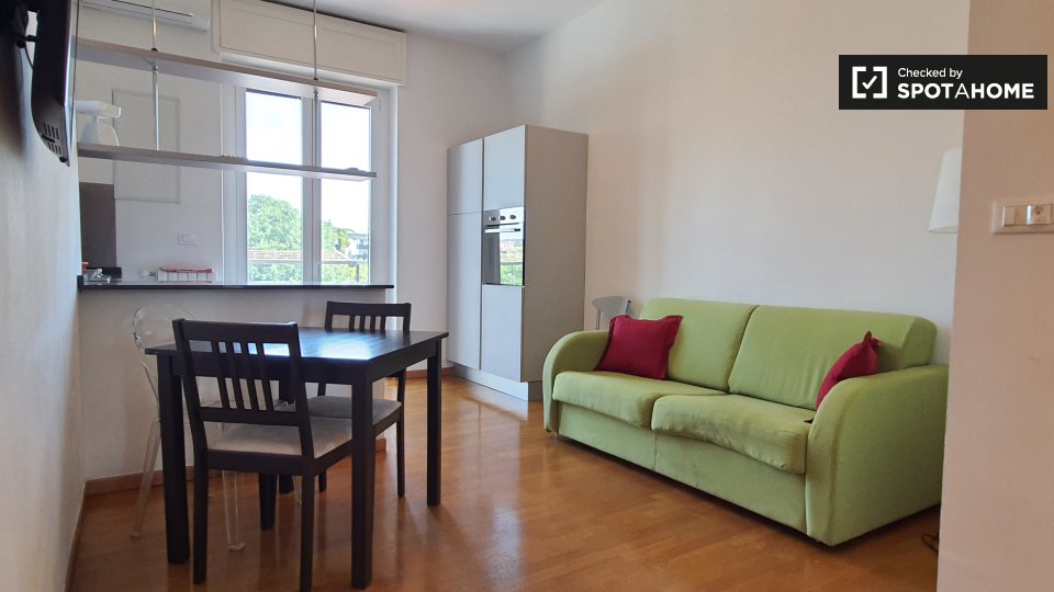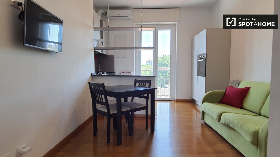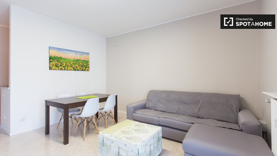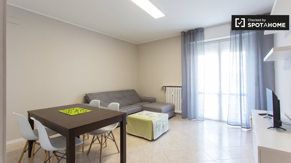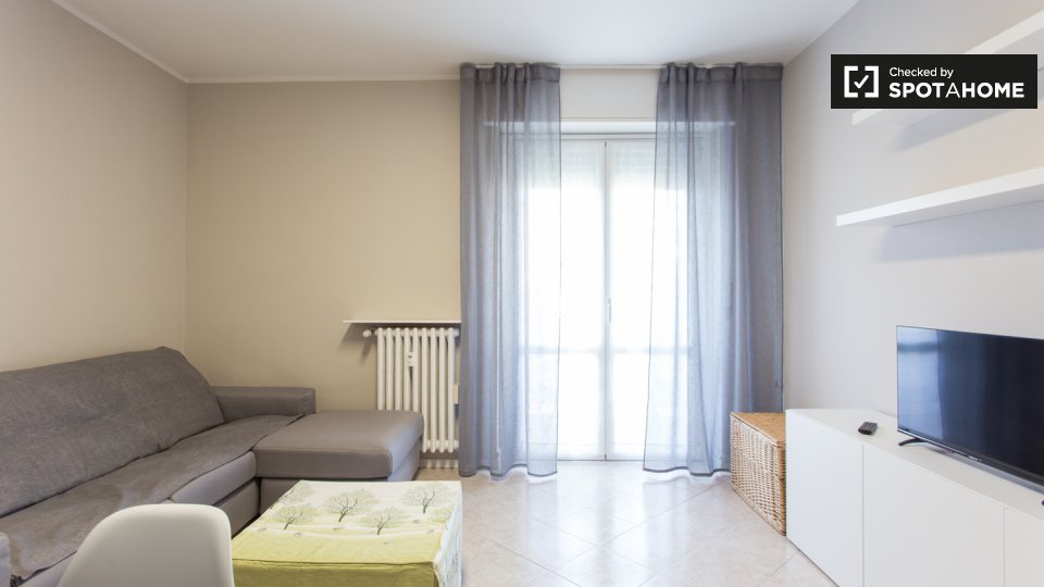 Questo grazioso appartamento con una camera da letto in Bovisa, Milano, è pronto per studenti. L'appartamento è arredato e dispone di un balcone o di una terrazza per godersi il panorama. È dotato di comfort essenziali come aria condizionata, risc...