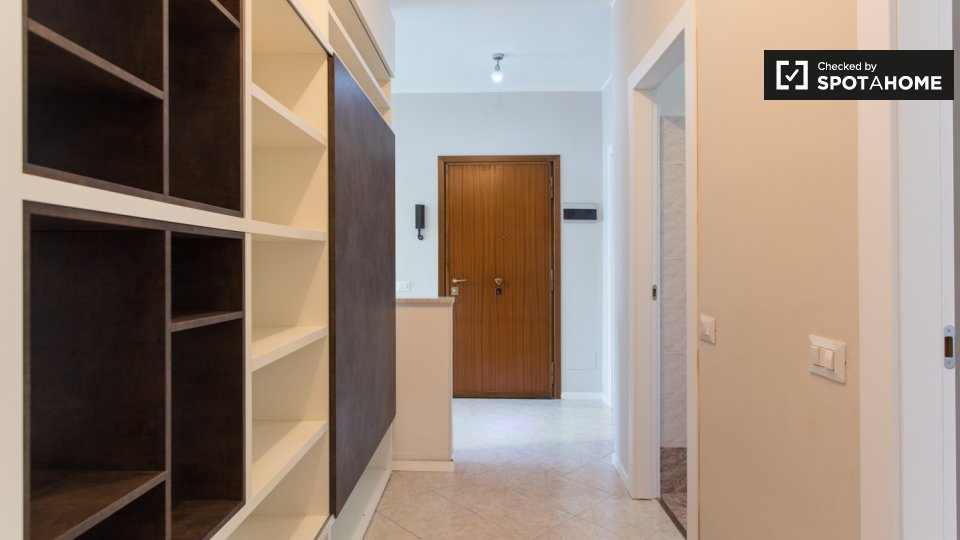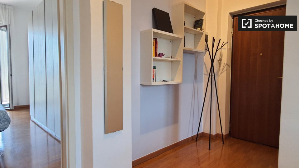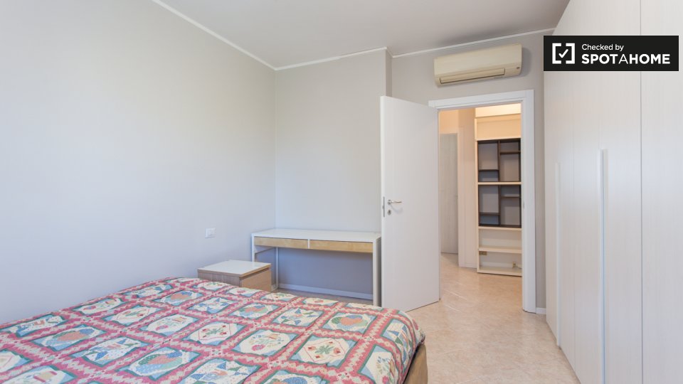 Scopri questo appartamento condiviso con 3 camere da letto situato nel vivace quartiere di Forze Armate, a Milano. La stanza è completamente arredata e dispone di aria condizionata centralizzata, riscaldamento centralizzato e un balcone dove potre...