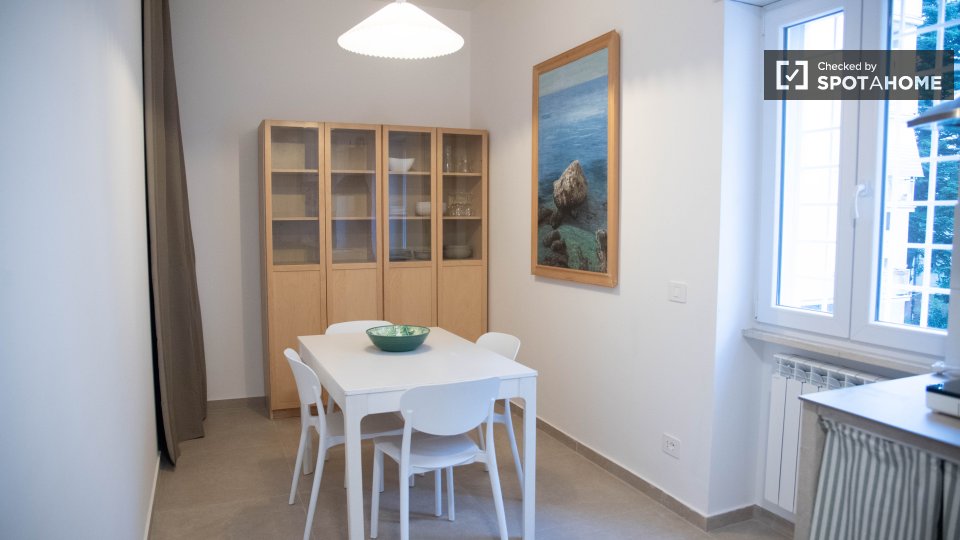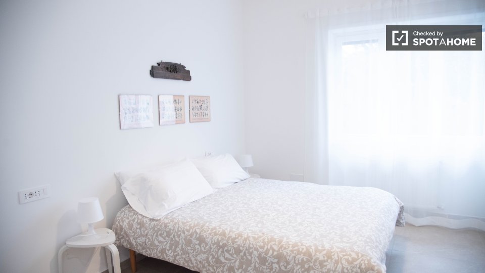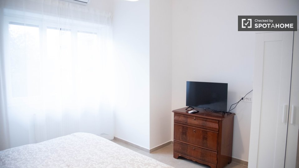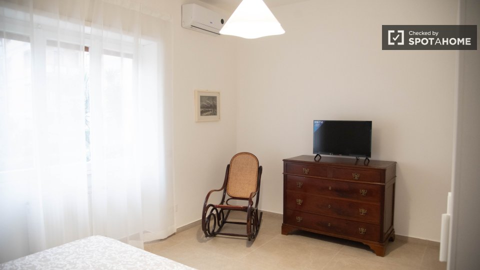 Scopri una stanza in affitto in un appartamento condiviso con 2 camere da letto a Tomba di Nerone, Roma. Questo appartamento è completamente arredato con tutto l'essenziale per un soggiorno confortevole. È dotato di aria condizionata e lavatrice p...