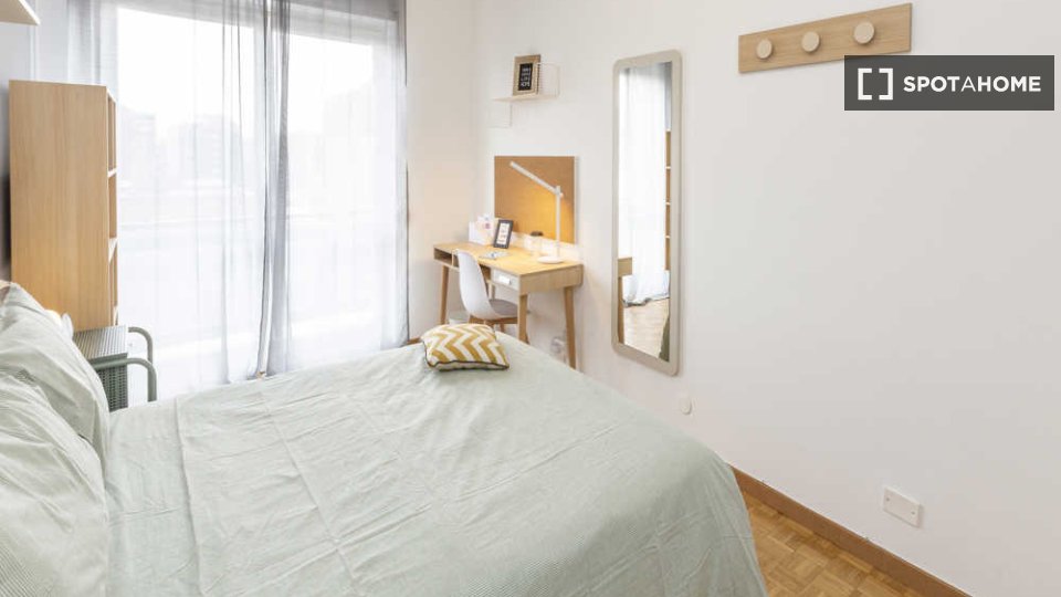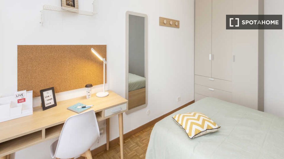 Camera con bagno in comune. Si trova all'interno di un appartamento con 3 camere (due singole e una doppia in totale) con soggiorno, cucina completamente attrezzata e TV. La superficie della camera è di circa 13 m². La camera è composta da un lett...
