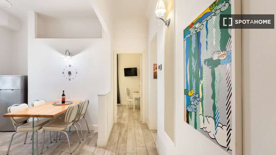 Questo grazioso appartamento con due camere da letto nel quartiere Eroi Trionfale di Roma offre un'esperienza abitativa completamente arredata e confortevole. L'immobile è dotato di elettrodomestici, tra cui lavatrice, asciugatrice, lavastoviglie ...