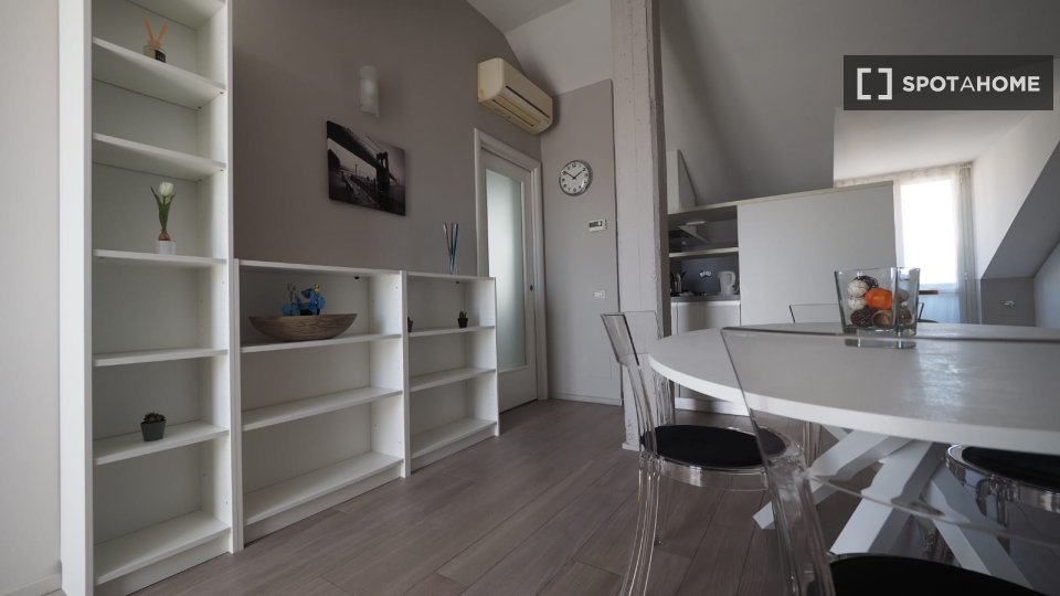 Scopri una comoda stanza in un appartamento condiviso con 2 camere da letto situato nell'incantevole quartiere dei Navigli. L'appartamento è completamente arredato e dispone di un balcone. È perfetto per studenti, professionisti e coppie. Tutte le...