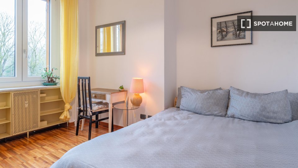 Benvenuti in un'incantevole camera in affitto in un appartamento condiviso con 2 camere da letto, situato nel vivace quartiere dei Navigli di Milano. Questo immobile esterno è completamente arredato e dotato di aria condizionata individuale e di u...