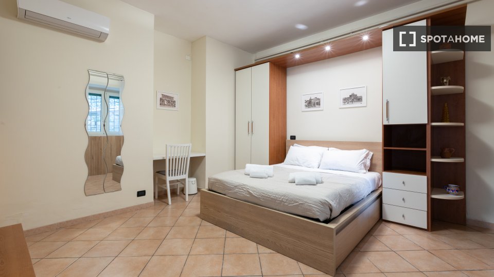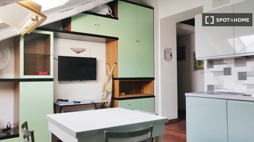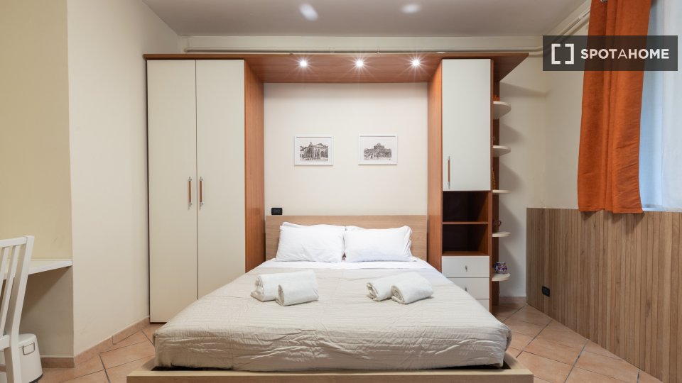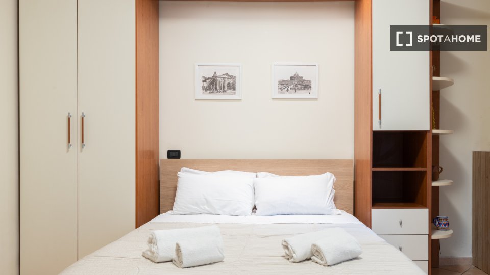 Questo monolocale nel quartiere Trionfale di Medaglie d'Oro offre un ambiente accogliente dotato di aria condizionata individuale, riscaldamento centralizzato e Wi-Fi incluso. Il monolocale è completamente arredato e dispone di una cucina attrezza...