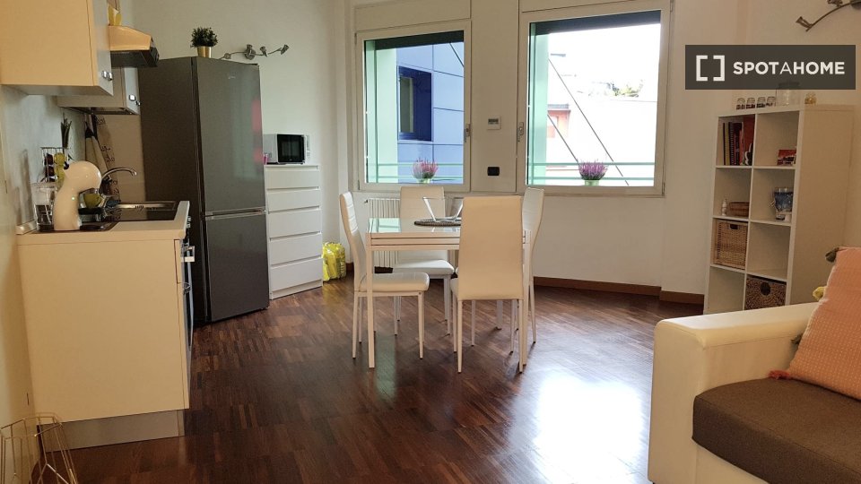 Questo appartamento arredato con una camera da letto a Mecenate, Milano, offre uno stile di vita moderno con una disposizione accogliente e funzionale. L'appartamento dispone di una cucina attrezzata, lavastoviglie e forno, per soddisfare tutte le...