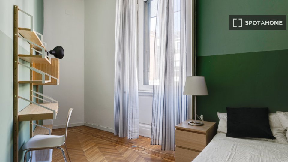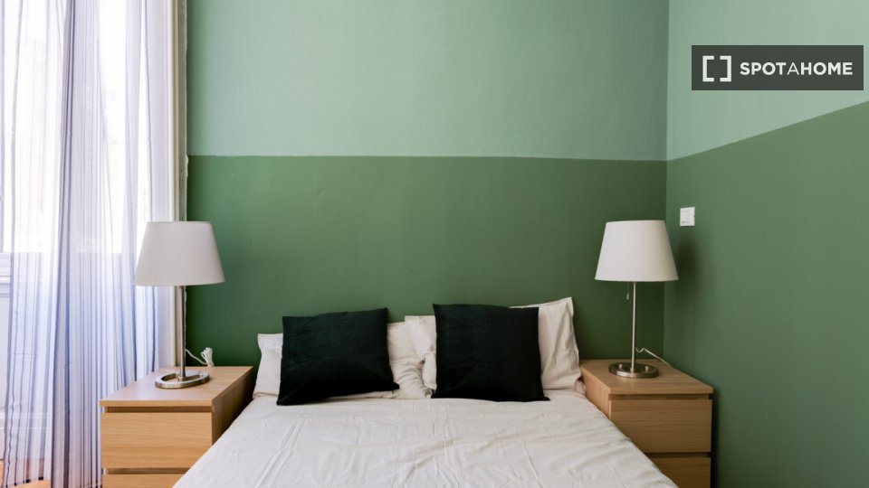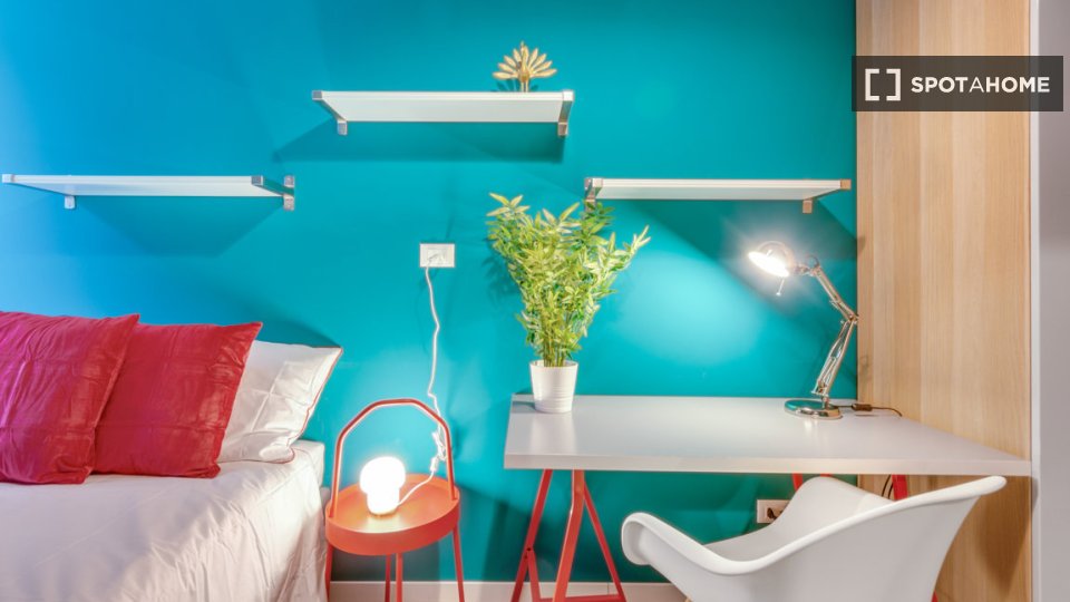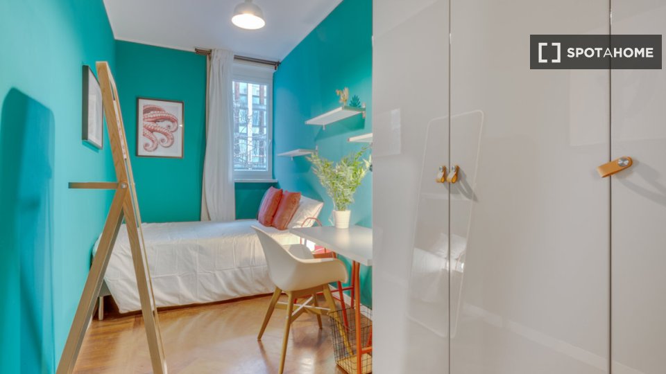 Questa è una stanza in un appartamento condiviso con 6 camere da letto situato a Greco, Milano. L'immobile è completamente arredato e dispone di una cucina attrezzata. Le coppie non sono ammesse; solo professionisti e studenti possono affittare qu...