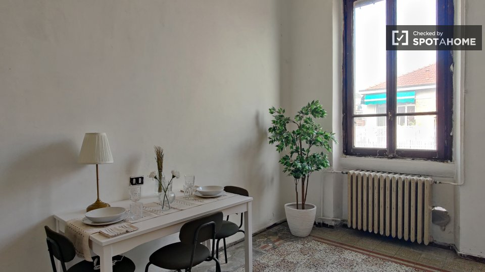 Scopri questo grazioso appartamento con una camera da letto nel vivace quartiere Bande Nere di Milano. Questo appartamento completamente arredato è dotato di una cucina completamente attrezzata. Tutte le utenze, tra cui elettricità, acqua, gas e W...