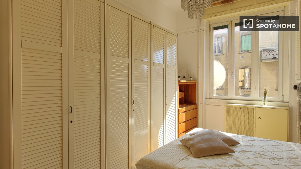 Questa è una stanza in un appartamento condiviso con 5 camere da letto situato in Centrale, Milano. L'appartamento è completamente arredato e include servizi come una cucina attrezzata, lavatrice privata, lavastoviglie, forno e TV. Il riscaldament...