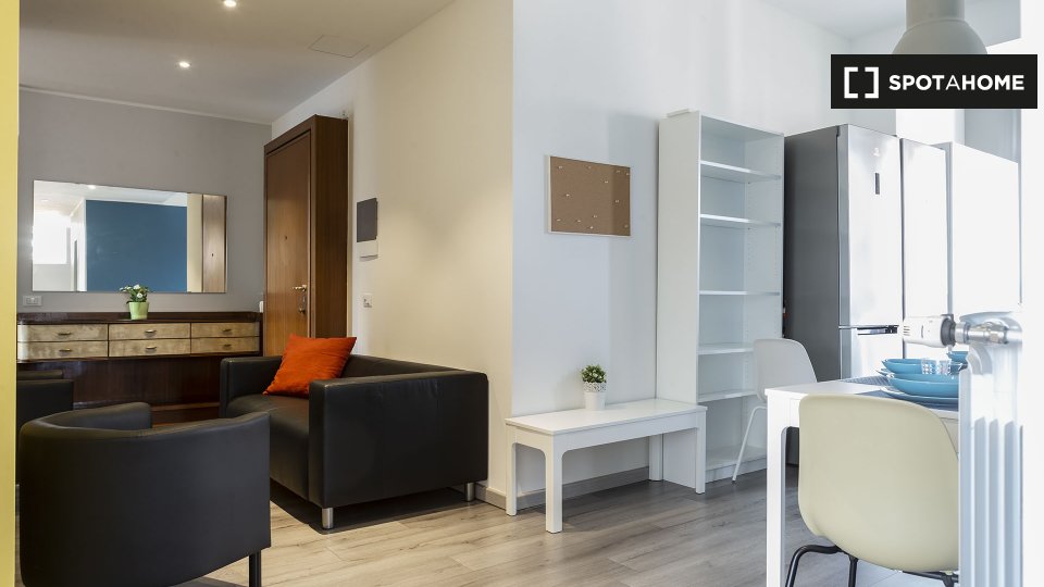Spotahome offre una stanza ben tenuta in un appartamento condiviso con 5 camere da letto a Bande Nere, Milano. L'appartamento è esposto all'esterno e completamente arredato, dotato di riscaldamento centralizzato, lavatrice, lavastoviglie, forno e ...