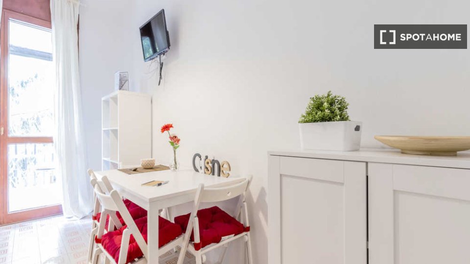 Questo monolocale nel quartiere Trionfale di Medaglie d'Oro offre un ambiente accogliente dotato di aria condizionata individuale, riscaldamento centralizzato e Wi-Fi incluso. Il monolocale è completamente arredato e dispone di una cucina attrezza...