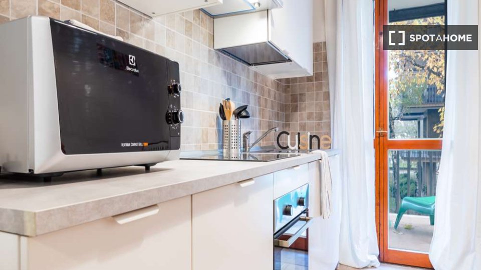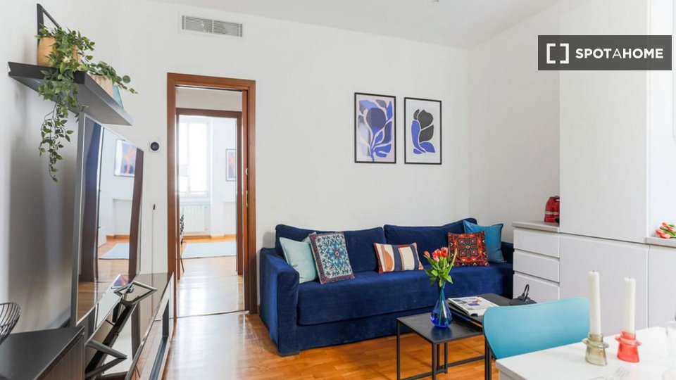Questo accogliente appartamento con una camera da letto nel quartiere Aurelio Sud di Roma è perfetto per professionisti, studenti, coppie o studenti Erasmus. È completamente arredato e attrezzato, con aria condizionata individuale, lavatrice priva...