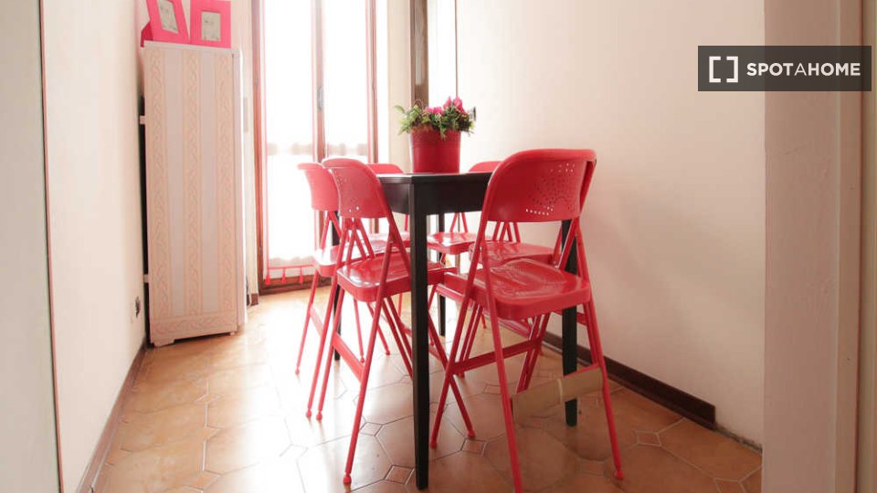 Benvenuti in questa accogliente stanza in un appartamento condiviso con 5 camere da letto situato a Lodi-Corvetto, Milano. Questa proprietà arredata è dotata di cucina attrezzata e riscaldamento centralizzato, rendendola confortevole e pratica. L'...