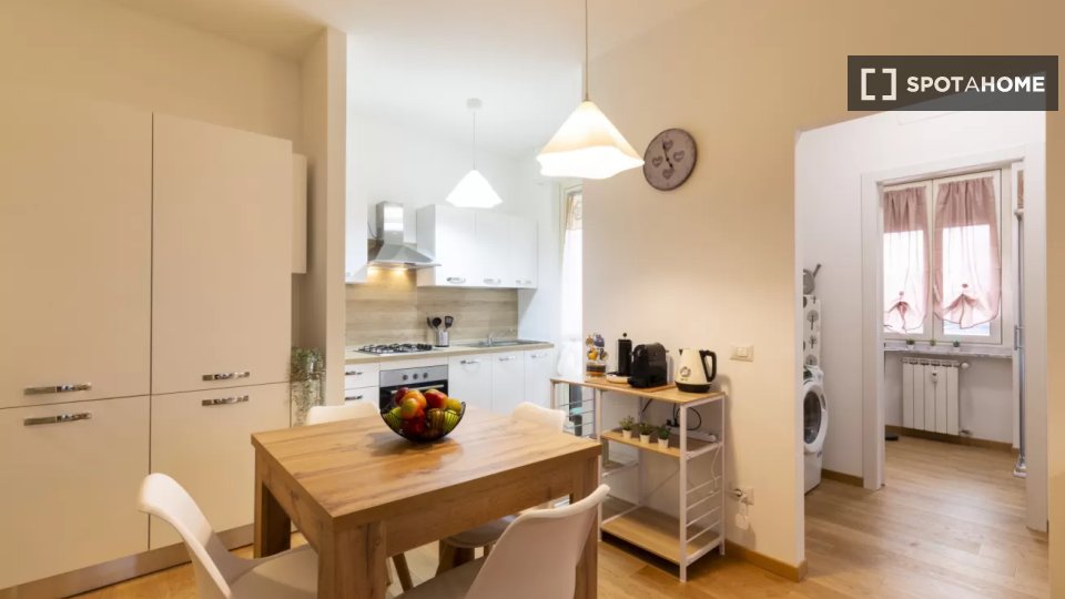 Le camere sono disponibili per l'affitto in un appartamento con 4 camere da letto a Ostiense, a Roma. C'è una cucina che è completamente attrezzata con posate e stoviglie. Essa ha anche un tavolo da pranzo e sedie, un fornello e una lavatrice, cos...