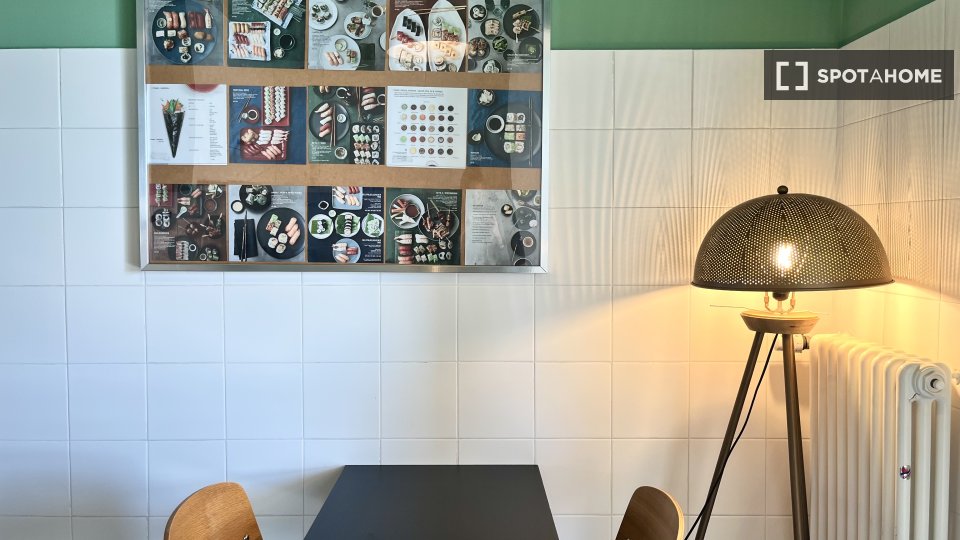 Le camere sono in affitto in questo colorato appartamento con 3 camere da letto nel quartiere San Lorenzo di Roma. La cucina in comune offre un forno a grandezza naturale con fornelli a gas e un grazioso tavolo per due. Questo appartamento è idea...