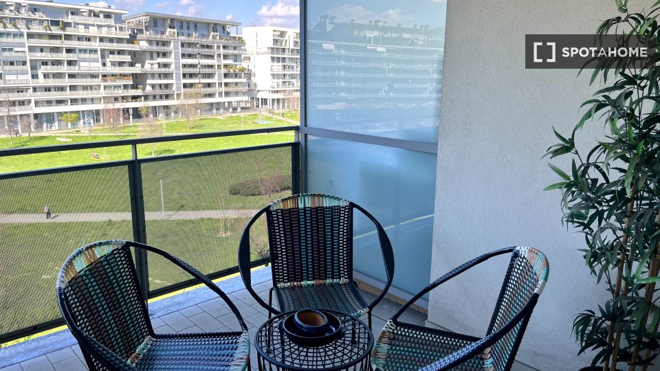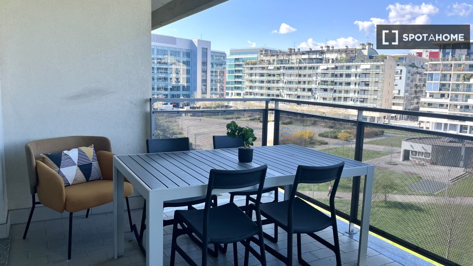 Appartamento arredato con 1 camera da letto in affitto in Via Del Futurismo. L'immobile si trova al 5 ° piano. Completano la proprietà balconi e aria condizionata.